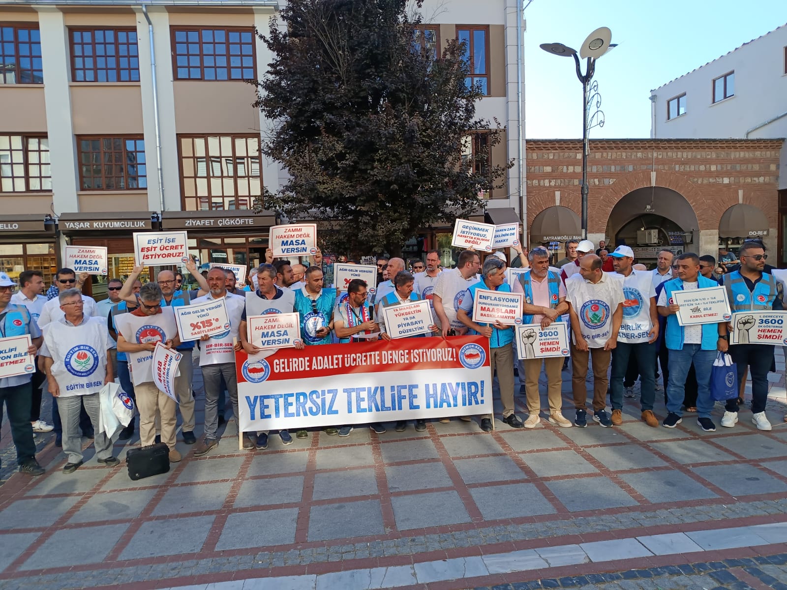 Ülkedeki 4 milyon kamu çalışanıyla 2.5 milyon emeklinin 2026 ve 2027’de alacakları artışların belirleneceği 8’inci dönem toplu sözleşme görüşmelerinde, iktidar kanadı 2026 yılı için yüzde 10+6; 2027 için ise yüzde 4+4 zam teklifiyle masaya geldi. Teklif, masada kamu çalışanlarını temsil eden sendikalar başta olmak üzere ülke genelindeki iş kollarında tepkiyle karşılandı. Memur Sen Edirne İl Başkanlığı ve Türkiye Kamu Sen Edirne Temsilciliği, konuyla ilgili basın açıklaması yaparak, teklife tepki gösterdi.