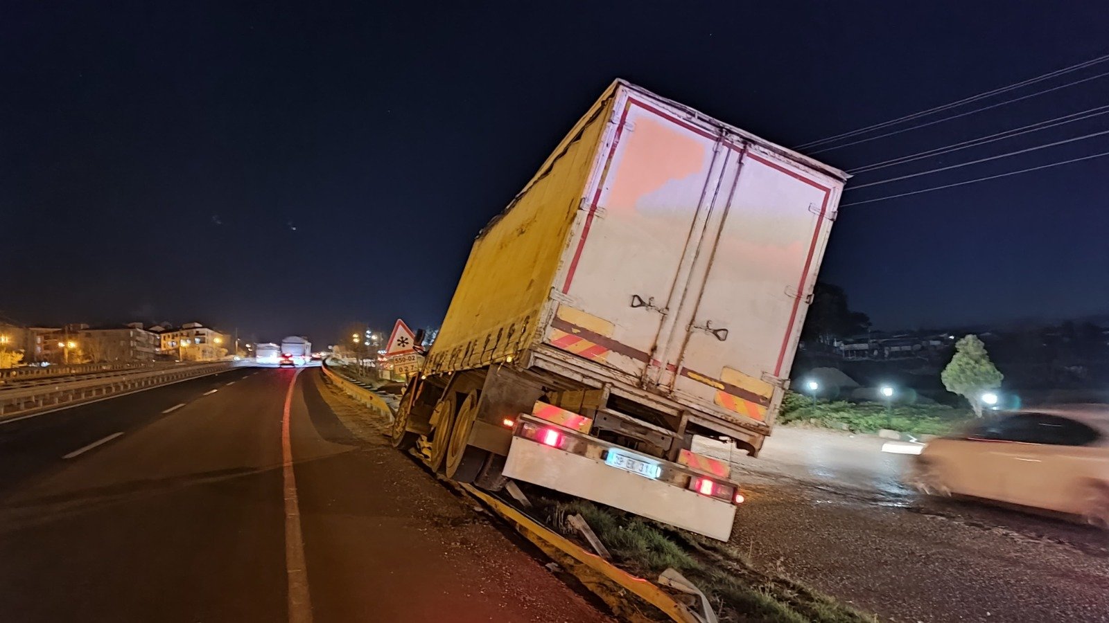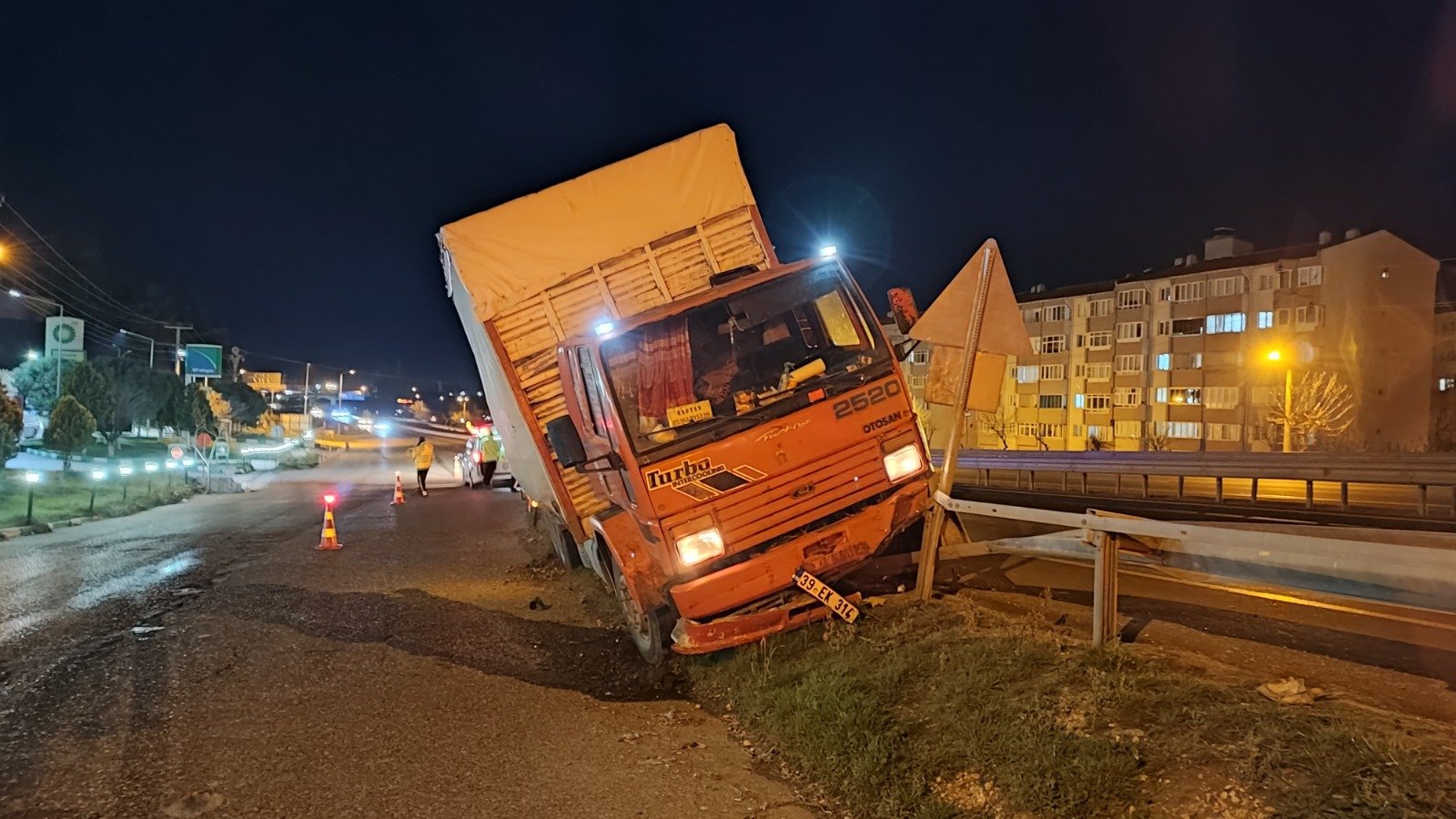 Bariyerlerin üzerinde askıda kalan kamyon çekici yardımıyla kurtarıldı. Kazayla, ilgili inceleme başlatıldı.