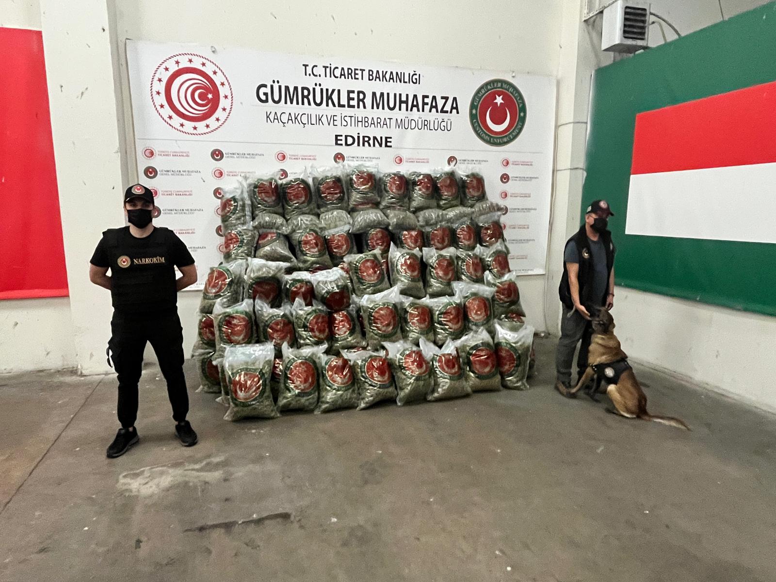 Kapıkule Sınır Kapısı’ndan giriş yapan TIR’da 233 milyon 555 bin lira değerinde 382 kilo esrar ele geçirildi.