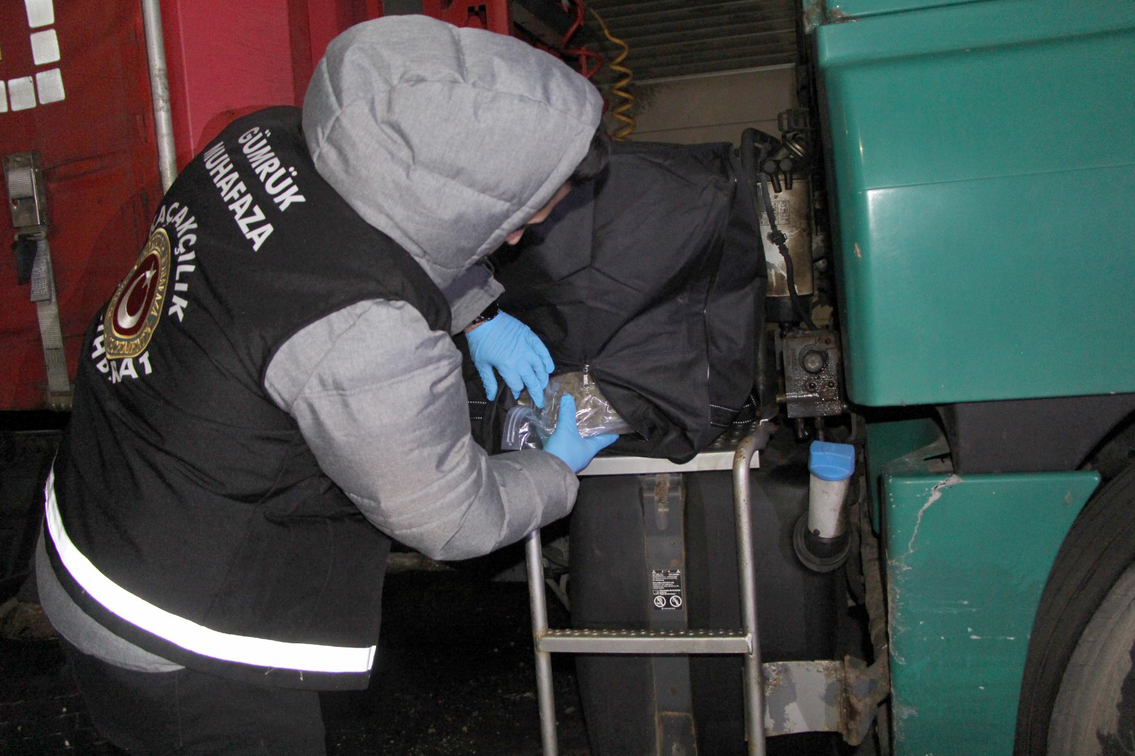 Kapıkule Sınır Kapısı’ndan Türkiye’ ye giriş yapan ve riskli görülen TIR X-Ray’a sevk edildi. TIR sürücüsünün aracını X-Ray sırasına sokmadığını fark eden ekipler, takibe aldı. Yapılan takipte sürücünün aracının altına bağladığı çantayı çıkarıp sahada park halinde bekleyen başka bir TIR’ın çekici ve dorsesinin arasına bıraktığı tespit edildi. Olayı fark eden gümrük muhafaza ekipleri, sürücüye suç üstü yaparak gözaltına aldı. Çantada yapılan aramada 21 kilogram uyuşturucu madde ele geçirildi.