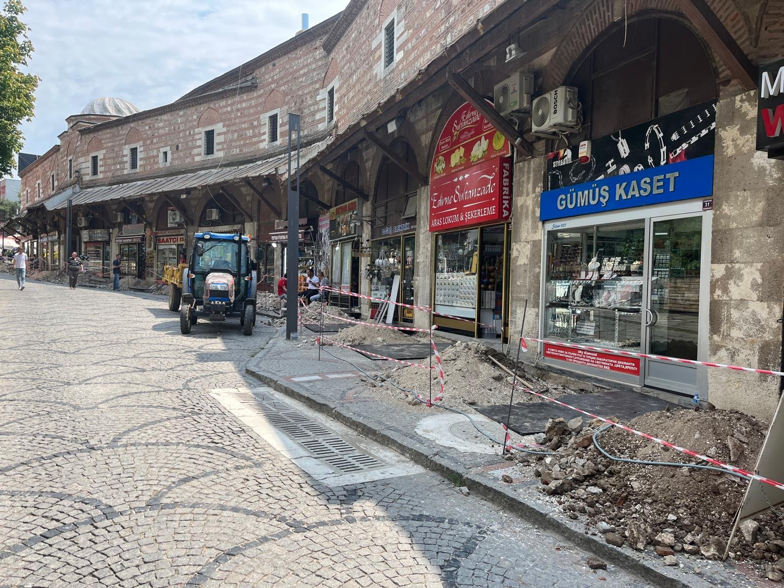 Vakıflar Bölge Müdürlüğü, kentin tarihi yapılarından Rüstempaşa Kervansarayı’nda dış dükkanların sundurmalarının yenilenmesi için start verdi. Çalışmalar kapsamında tarihi yapının dış cephesindeki tüm dükkanların sundurmalarının yenileceği ifade edildi. Dükkanların önündeki kaldırım ise elektrik kablolarının yer altına alınması amacıyla geçici süreliğine kazıldı. Esnafın dükkanlarına, önlerine koyulan tahta parçaları vasıtasıyla geçiş sağlandı.