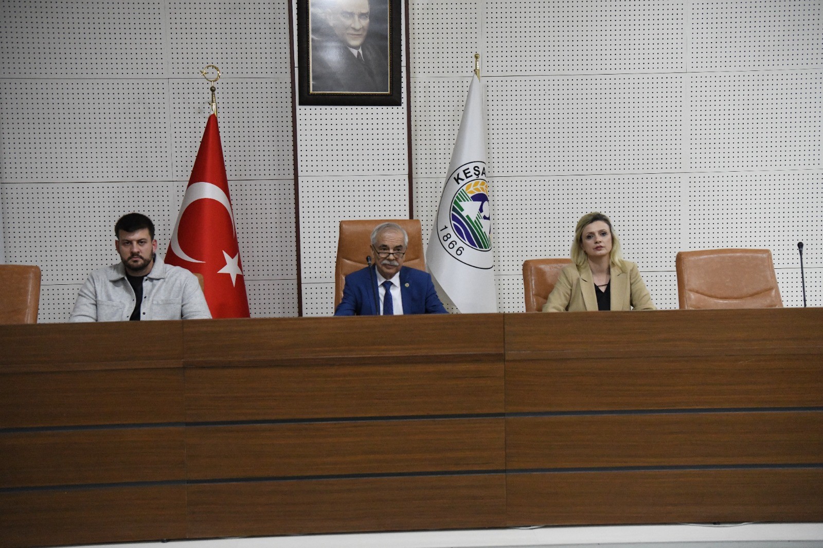 Keşan Belediye Meclisi’nin 2025 Yılı Nisan Ayı Olağan Meclis Toplantısı Belediye Meclis Salonu’nda Belediye Başkanı Op. Dr. Mehmet Özcan başkanlığında gerçekleştirildi. Meclisin ilk gündem maddesinde Keşan Şoförler ve Otomobilciler Esnaf Odasının, 03.03.2025 tarih ve 2025/27 sayılı yazıları ile “Toplu taşıma araçlarının ücret tarifesinin Edirne Esnaf ve Sanatkârlar Odaları Birliği tarafından belirlenmesi” talepleri görüşmeye açıldı, daha sonra Meclis Başkanı Özcan’ın talebiyle madde oylanarak oybirliği ile geri çekildi. İkici gündem maddesinde, 2025 yılı Vergi, Harç ve Ücret Tarifelerine “Ev Hayvanı Pasaportu İşlem Bedeli” olarak 300,00 TL ücret tarifesi kaleminin eklenmesi hususu mecliste görüşüldü. Grup sözcülerinin konuşmalarının ardından, madde oybirliği ile kabul edildi. Üçüncü maddede, 5393 Sayılı Belediye Kanunu’nun 49.Maddesi 2. Fıkrası “Belediye personeli, belediye başkanı tarafından atanır. Birim müdürlüğü ve üstü yönetici kadrolarına yapılan atamalar ilk toplantıda belediye meclisinin bilgisine sunulur.” hükmü gereği Meclise bilgi verildi. 2024 yılı gelir bütçesinin gerçekleşme oranı yüzde 82.06