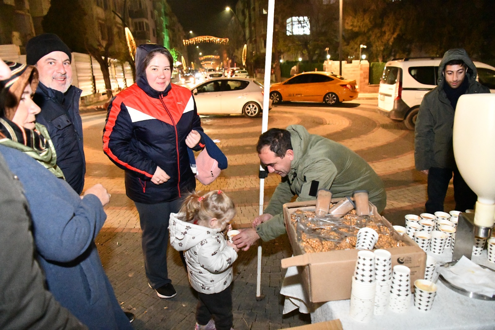 Keşan Kent Müzesi önü ile Cumhuriyet Meydanı’nda kurulan ikram noktalarında vatandaşlara boza ve leblebi dağıtıldı. Soğuk kış gecesinde yapılan ikramlar, Keşanlılar tarafından memnuniyetle karşılandı.