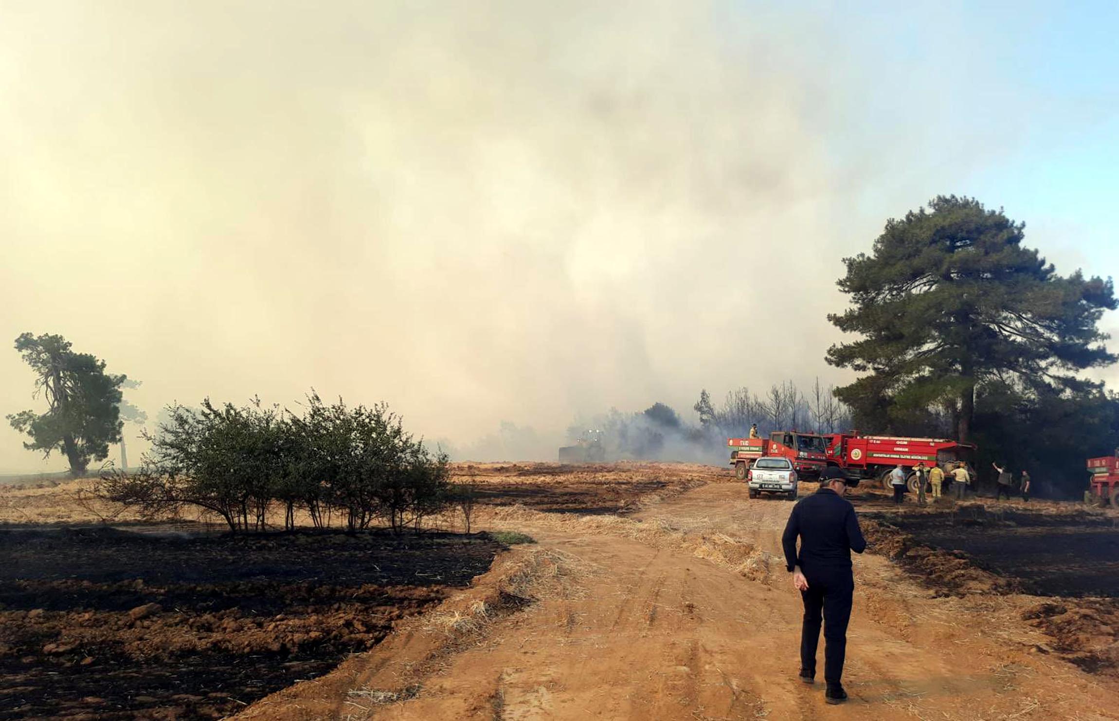 Edirne’nin Keşan ilçesine bağlı Mahmutköy mevkisinde çıkan orman yangınında yaklaşık 40 dekar alan zarar görürken, söndürme çalışmaları sırasında 5 personel arazözün devrilmesi sonucu hafif şekilde yaralandı.