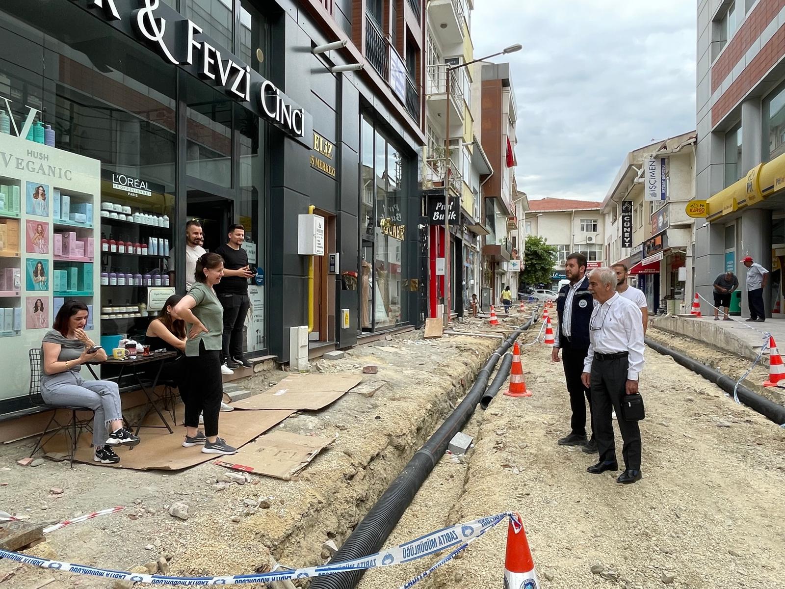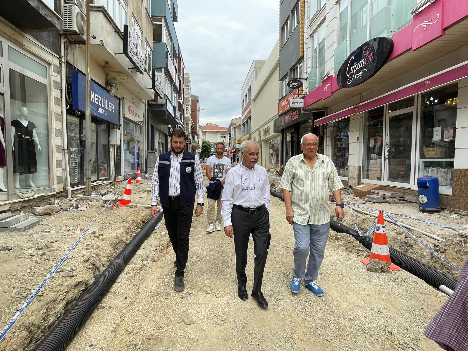 Yapılan çalışmalar hakkında bilgilendirmede bulunan Özcan, “Namazgah Sokak’tayız ve yaklaşık 15 gün önce başladığımız kent içi sokak düzenleme çalışmalarını denetliyorum. Yaptığımız düzenlemeler kapsamında her iki tarafı da yağmur suyu olukları ile donattık. Bu oluklar kaldırımın altında yer alacak şekilde tasarlandı ve herhangi bir su birikintisi oluşmaması için özenle yerleştirildi. Bu çalışmalarla ilgili vatandaşlarımıza bilgi vermek isterim. Mevcut alanda, elektrik, doğalgaz ve su girişi, pis su gideri bulunuyor. Doğal olarak, belediye çalışanları bunlarla ilgili çalışma yapıp, müteahhide ‘Buyur gel’ demesi lazım. Ama duyuyorum ki, ‘Belediye çalışanları yapıyor neden müteahhitte verilmiş?’ deniyor. Eğer biz gerekli çalışmaları yapmazsak, müteahhit çekilmiş bağlantı hatlarını kopartırsa ne olacak? Elektrik, doğalgaz, su, pis su ve yağmur suyu bağlantıları nasıl toplanacak? Müteahhit, bu işlemleri yapmakla yükümlüdür; ancak bizim denetimimiz altında gerçekleşmelidir. Mesela, doğalgaz kazılarına girildiğinde yağmur suyu kanalına, su borularına hasar verilmesinde diye belediye elemanlarını gönderiyoruz.” dedi.