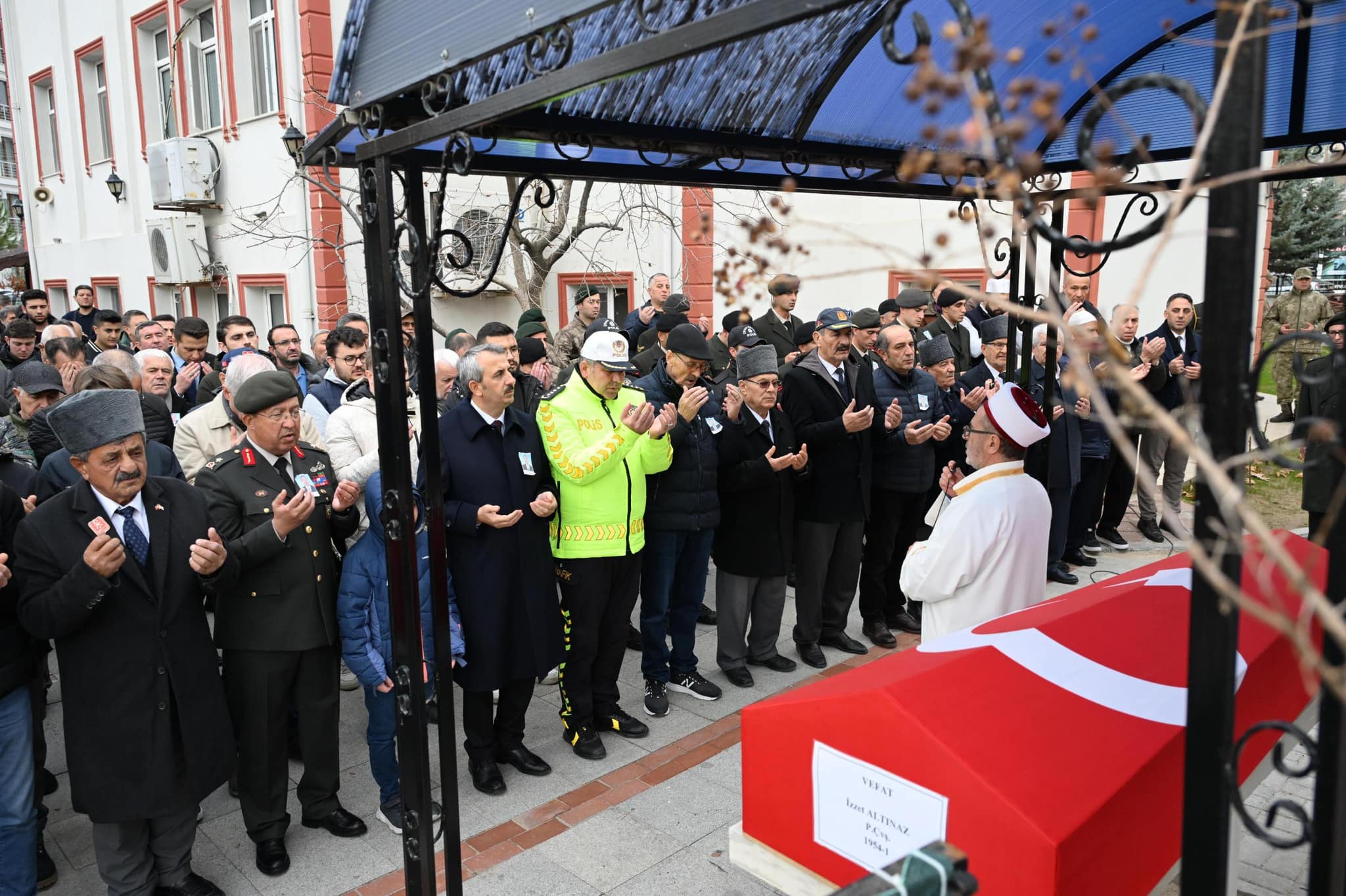 Önceki gün vefat eden Kıbrıs Gazisi 70 yaşındaki İzzet Altınaz dün Lala şahin Paşa Camisinde öğle namazını takiben kılınan cenaze namazının ardından askeri törenle son yolculuğuna uğurlandı.