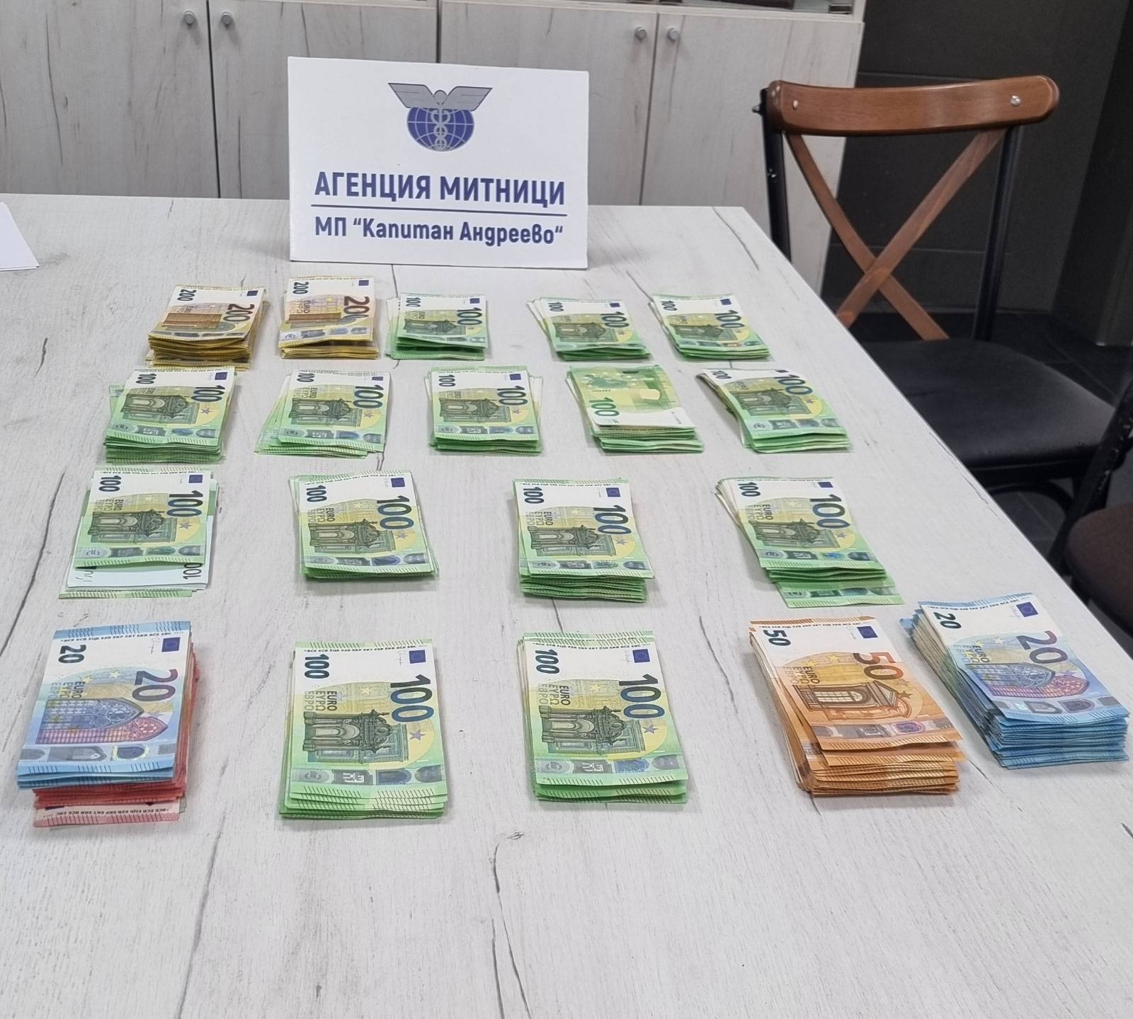 Türk plakalı bir otomobilde yapılan incelemede beyan edilmeyen para birimi bulundu. Sürücü ve Türk vatandaşı arkadaşı, Almanya’dan Bulgaristan üzerinden Türkiye’ye geçmek üzere geldikleri Kapitan Andreevo sınır kapısında beyan edilecek mal veya nakit taşımadıklarını belirtti.Yapılan kontrollerde, aracın orta konsolun iki ön koltuğun arasında yer alan fabrika boşluğunda Euro banknotları bulundu. Sürücünün kişisel muayenesi sırasında iç çamaşırında ve ceketinin cebinde de Euro banknotları ele geçti. Belirlenen para biriminin toplam tutarı 79 bin 660 Leva’ya eş değer 40 bin 730 Euro olarak belirlendi.