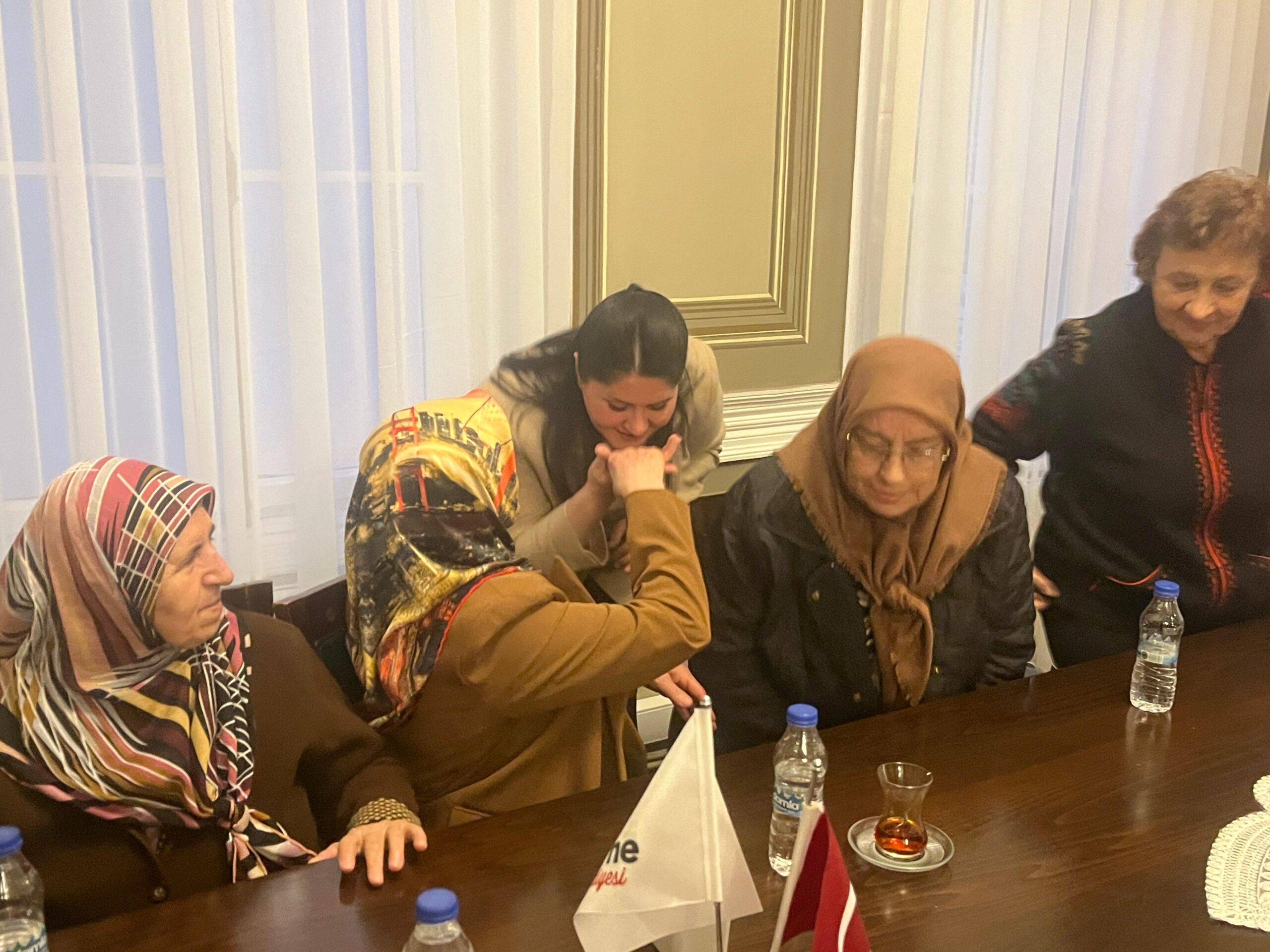 Şehit aileleri olarak son zamanlarda üzüntülü günler geçirdiklerini kaydeden Karaduman, “Şehit aileleri olarak son zamanlarda gerçekten çok üzüntülü günler geçiriyoruz. Sesimizi çıkartmadığımız düşünülüyor ama aslında biz sesimizi çıkartıyoruz. Sadece duyulmuyor, duymak istemiyorlar. Çok üzgünüz yaşanan süreçlerden dolayı. O nedenle de ailelerimize dokunacak, onların yüzünü güldürecek her ne olursa olsun biz onlarla birlikte olmaya çalışıyoruz. Başkanıma da teşekkür ederim. Bizi burada ağırladığı için, annelerimizin biraz olsun yüzlerini güldürdüğü için” ifadelerini kullandı.