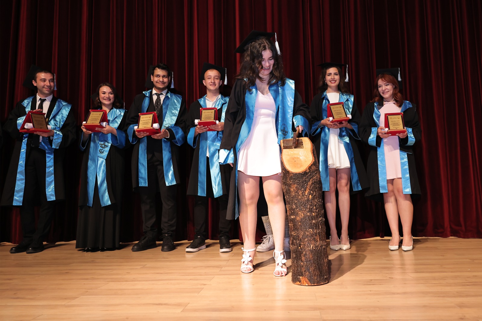 Tören, dereceye giren ve mezun olan öğrencilere plaket ve diplomalarının verilmesinin ardından okunan meslek yemini ve geleneksel kep atma töreniyle sona erdi.