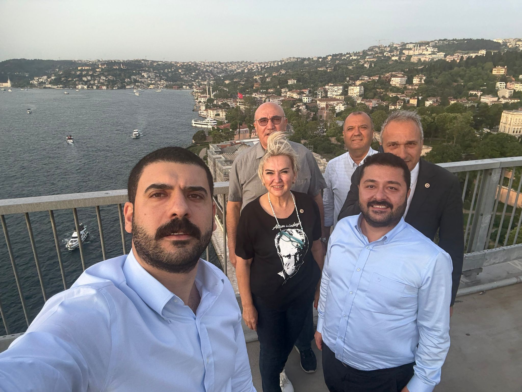 CHP Genel Başkanı Özgür Özel ve Sosyalist Enternasyonal heyeti, Boğaz Köprüsü’nün altından geçerken, köprüye gelen CHP İstanbul Milletvekilleri Suat Özçağdaş ve Ali Gökçek, Şanlıurfa Milletvekili Mahmut Tanal, Edirne Milletvekili Ahmet Baran Yazgan ve Tekirdağ Milletvekili İlhami Özcan Aygun, burada “Free İmamoğlu” (İmamoğlu’na özgürlük) pankartı astı. CHP Lideri Özel, pankartı Sosyalist Enternasyonel Konsey Toplantısı katılımcılarıyla birlikte Boğaz’dan izledi.