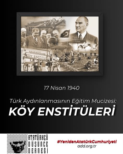 Atatürkçü Düşünce Derneği olarak, Köy Enstitüleri’nin fikir babası Büyük Atatürk’ü, dönemin Cumhurbaşkanı İsmet İnönü’yü, kurucuları Hasan Âli Yücel ve İsmail Hakkı Tonguç’u, elleri öpülesi öğretmenlerimizi, yazar ve aydınlarımızı minnet ve şükranla anıyoruz.
