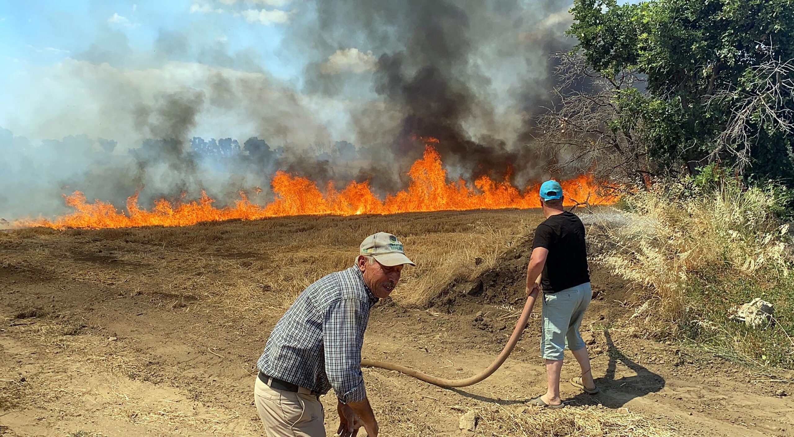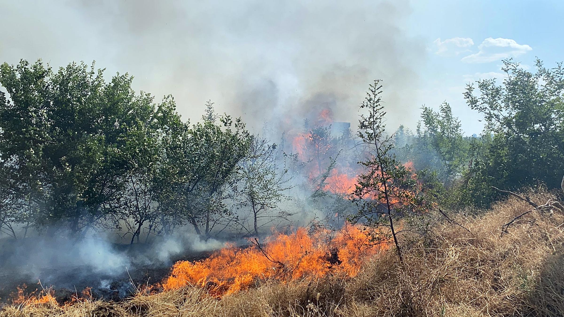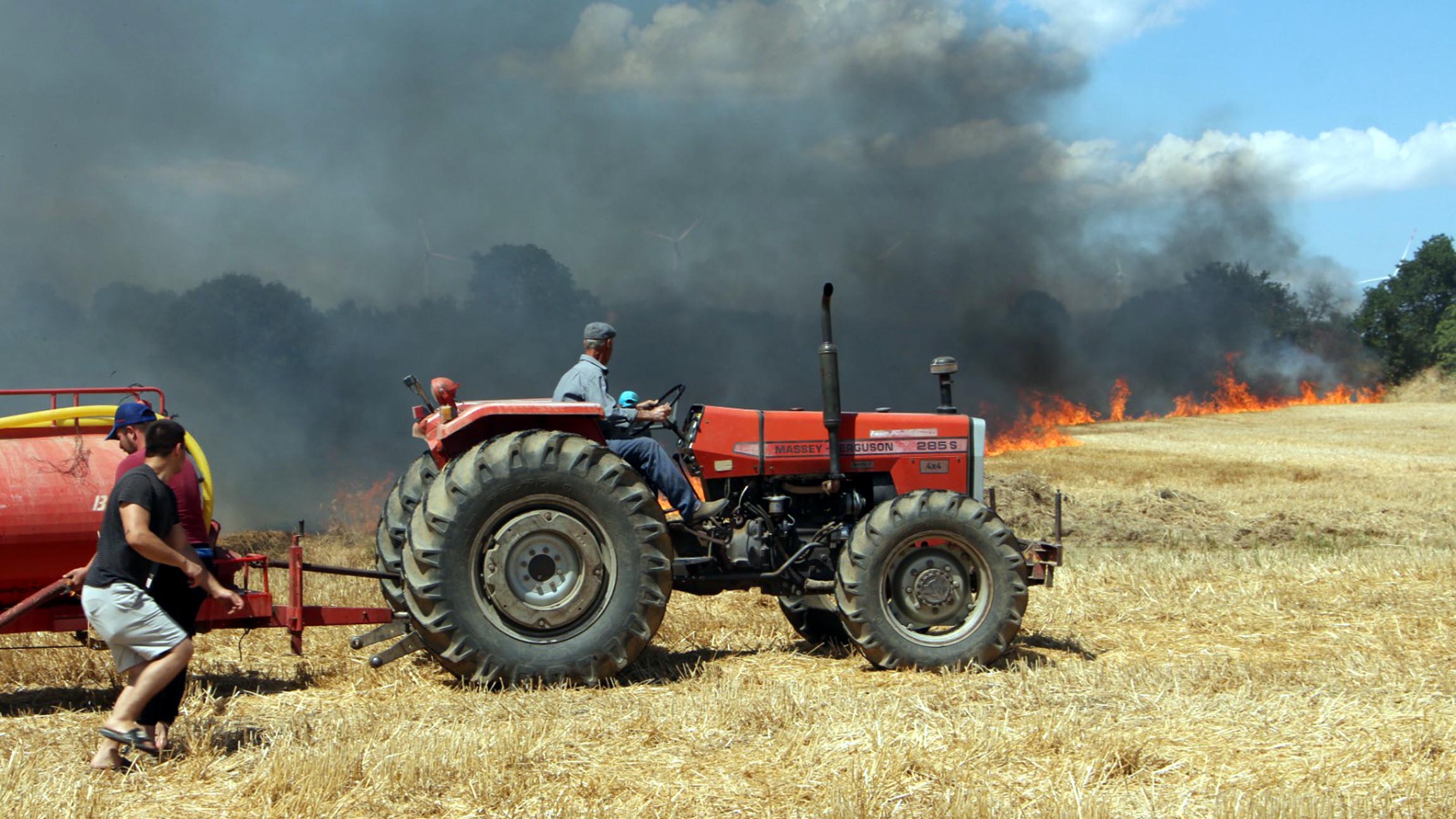 Edirne’de Lalapaşa ilçesine bağlı Donbay Köyü yakınlarında buğday tarlasında çıkan yangın, rüzgarın da etkisiyle yayılıp çevredeki ağaçlara sıçrayarak büyüdü.