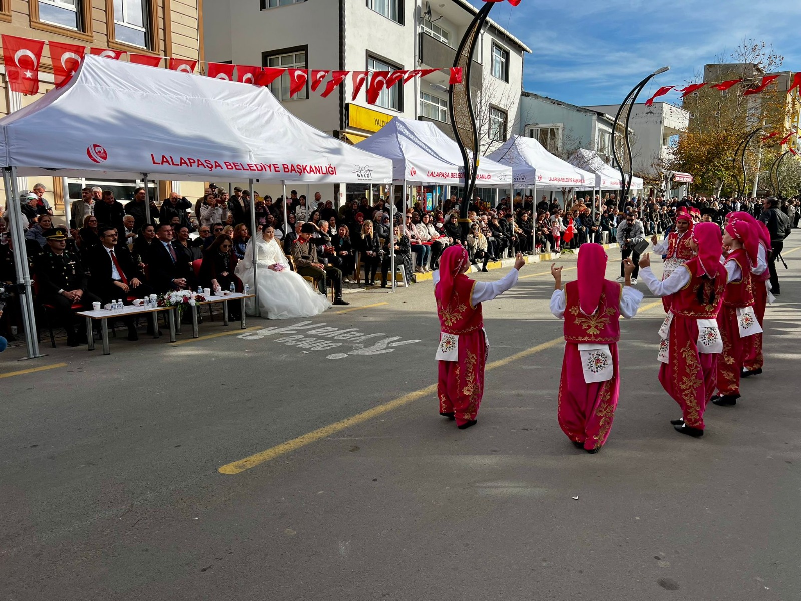 Lalapaşa Çok Programlı Anadolu Lisesi öğrencileri tarafından hazırlanan “Kurtuluş Kahramanları” adlı gösterinin sahnelendiği programda halk oyunları gösterileri yapıldı, şiirlerin okundu.
