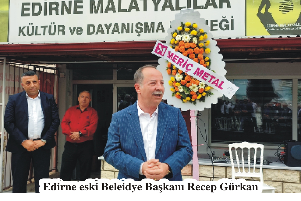 Edirne’de yaşayan Malatyalılar, Edirne Malatyalılar Kültür ve Yardımlaşma Derneği çatısında altında buluştu. Derneğin Fatih Mahallesi’ndeki binasının açılışıysa dün gerçekleştirildi. Açılışa önceki dönem Edirne Belediye Başkanı Recep Gürkan, Edirne Ticaret ve Sanayi Odası (ETSO) Başkanı Sezai Irmak, dernek üyeleri ve aileleri katıldı.