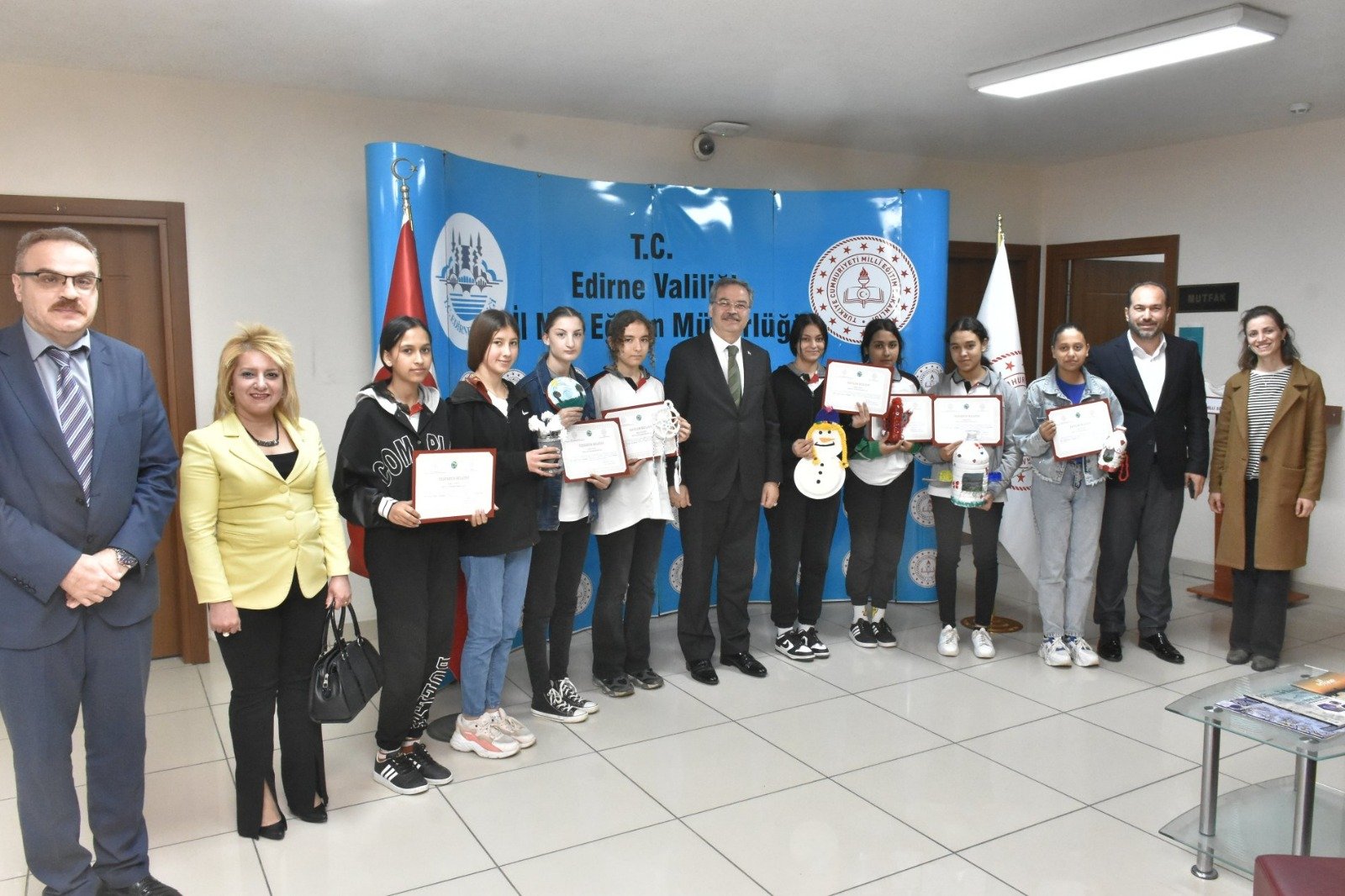 Edirne geneli Mesleki ve Teknik Anadolu Lisesi öğrencileri arasında dereceye giren öğrencilere belgeleri İl Milli Eğitim Müdürlüğü’nde düzenlenen törende İl Millî Eğitim Müdürü Dr. Önder Arpacı tarafından verildi.