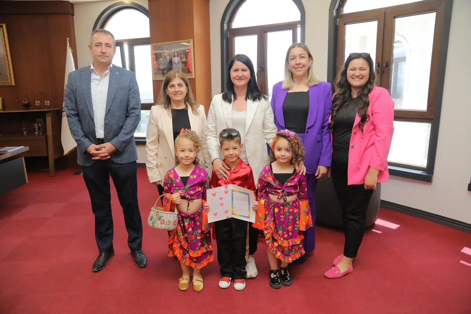 5 yaşındaki Ceylin Ada Mercan, Ömer Söner ve Bilge Hüma Teke, öğretmenleri eşliğinde gerçekleştirdikleri ziyarette Başkan Gencan Akın’a, saat 13.00’te Edirne Belediyesi Atatürk Kültür Merkezi ve Belediye Konservatuvarı’nda yapılacak şenliğin davetiyesini takdim etti.