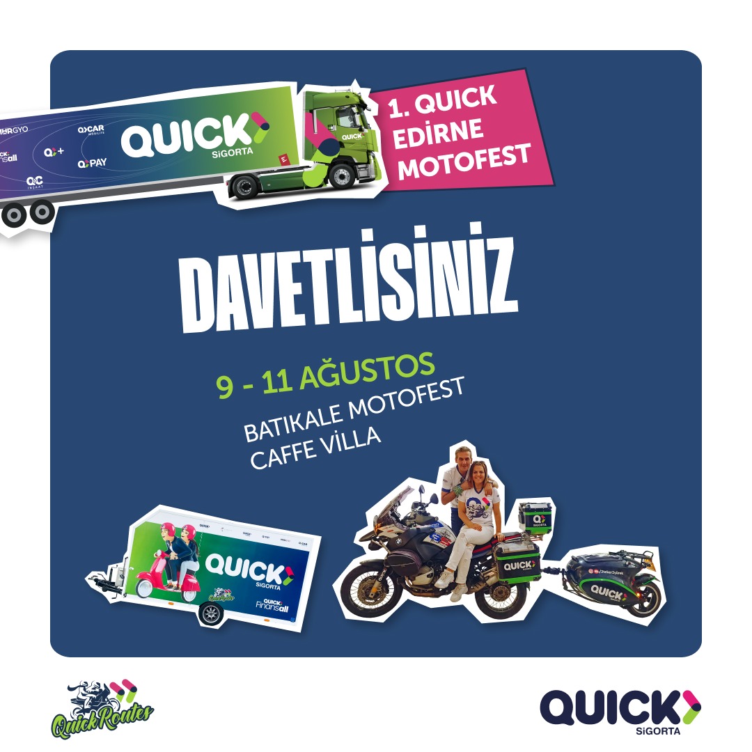 Quick Sigorta, QTruck ve QKaravan ile motosiklet festivallerinin ilgi odağı olmaya devam ediyor. Hatay’dan sonra şimdi de Edirne’de çeşitli yarışma ve aktivitelerin yer aldığı standıyla katılımcılara eşlik edecek. Motosiklet gezgini Dilek ve Özgür Candar’dan oluşan Quick Routes ekibi, eğlence dolu içerikler ve sürpriz hediyelerle festivalde yer alacak. Ayrıca, tüm QTeam, festival boyunca katılımcılarla etkileşimde bulunarak unutulmaz anılar biriktirmelerine yardımcı olacak.