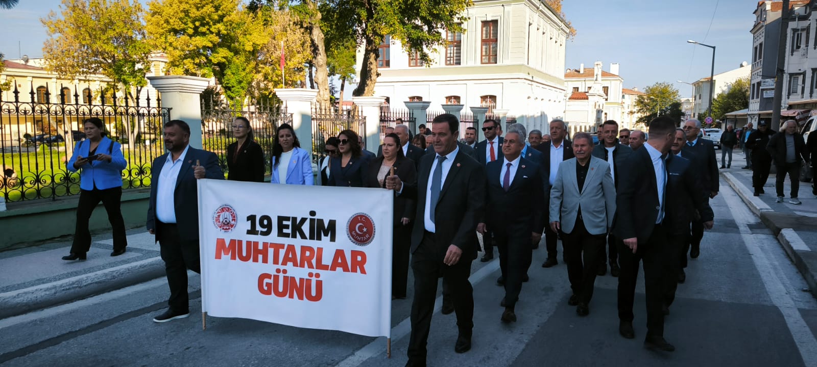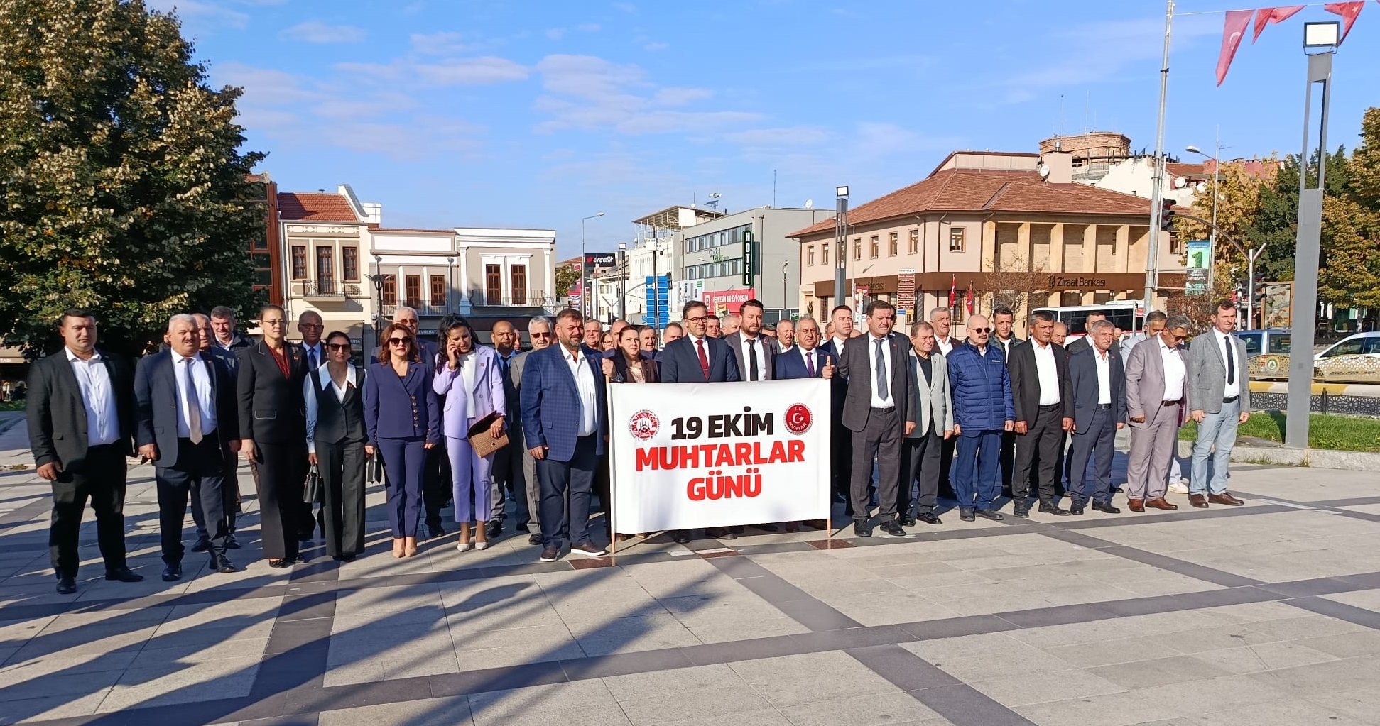 Edirne’de mahalle ve köy muhtarlarından oluşan kortej, 19 Ekim Muhtarlar Günü dolayısıyla Hükümet Caddesi üzerindeki Muhtarlar Konağı önünde toplanarak, Edirne Belediye Bandosu eşliğinde Atatürk Anıtı’na yürüdü. Törene, Edirne Belediye Başkan Vekili Cenk Ergüden, Edirne Köy ve Mahalle Muhtarları Federasyonu Başkan Yardımcısı Seçkin Sutcan, Edirne Merkez Mahalle Muhtarları Başkanı Aykut Yaman, Edirne Köy ve Mahalle Muhtarları Derneği Başkan Yardımcısı Nesrin Günay ile çok sayıda köy ve mahalle muhtarı katıldı. Anıta çelenk sunulmasının ardından saygı duruşunda bulunulup İstiklal Marşı okundu.