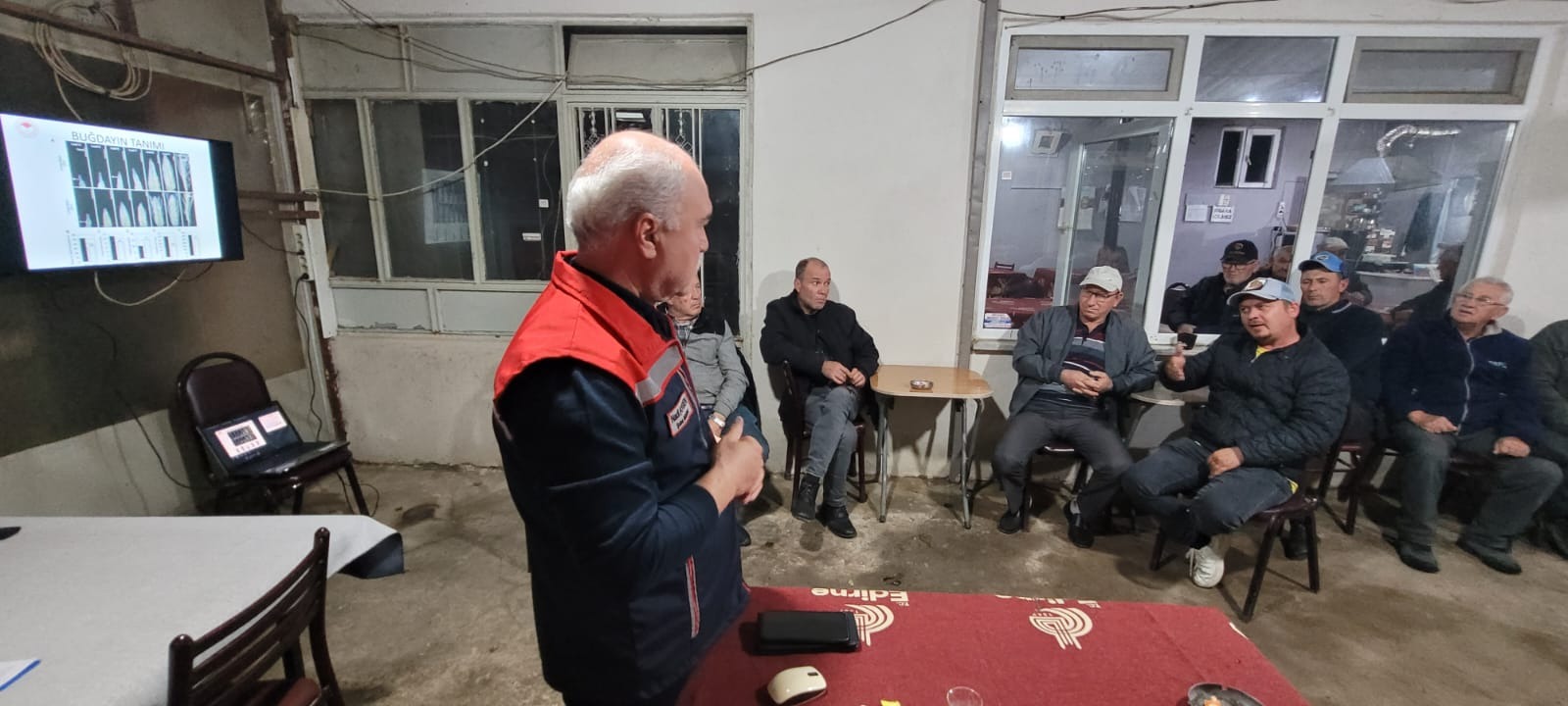 Edirne merkeze bağlı Musabeyli Köyü’nde üreticilere, buğday üretim teknikleri, tarımsal destekleme ve bitkisel üretim planlaması gibi konuların anlatıldığı gece eğitimi verildi.