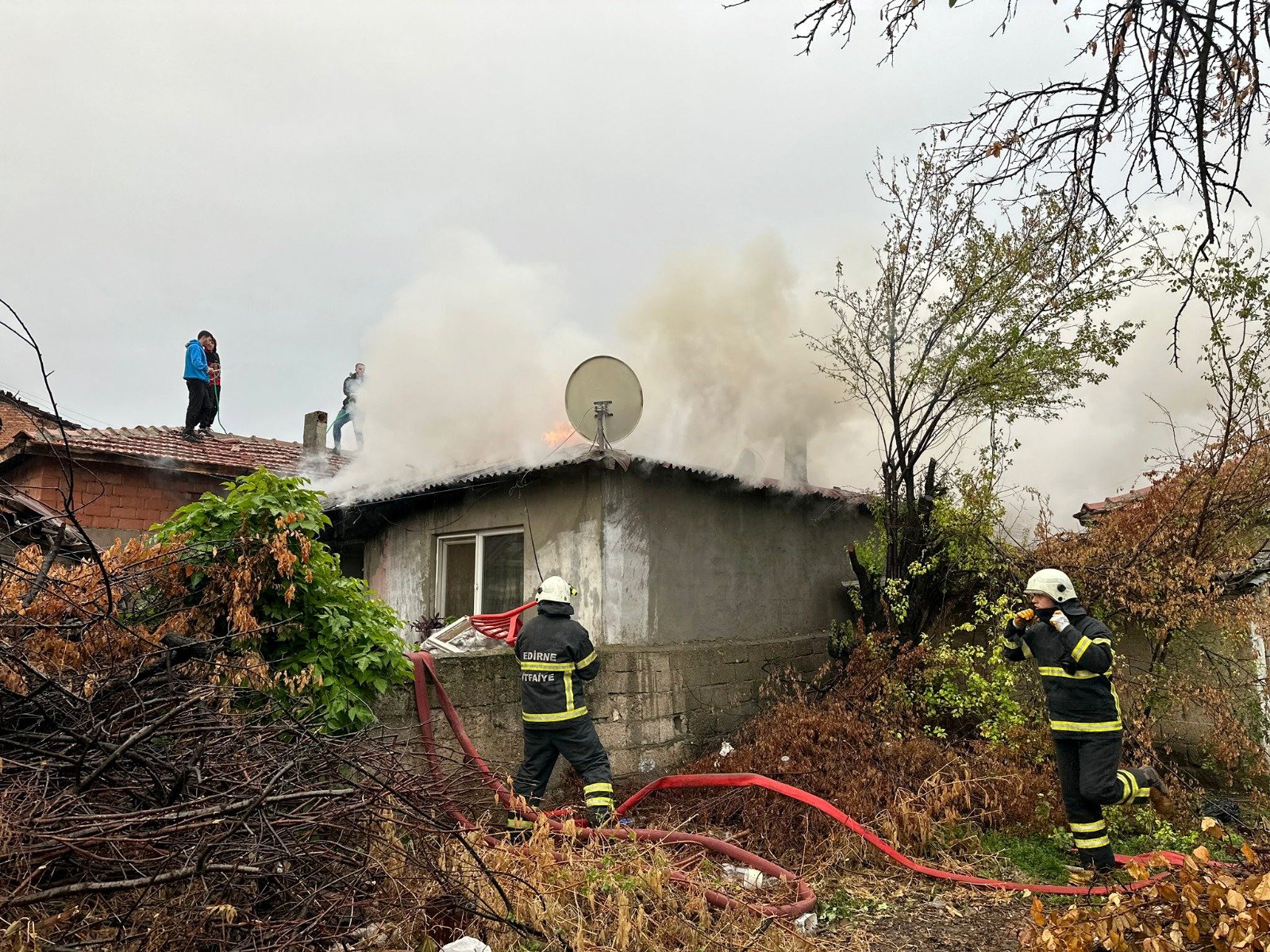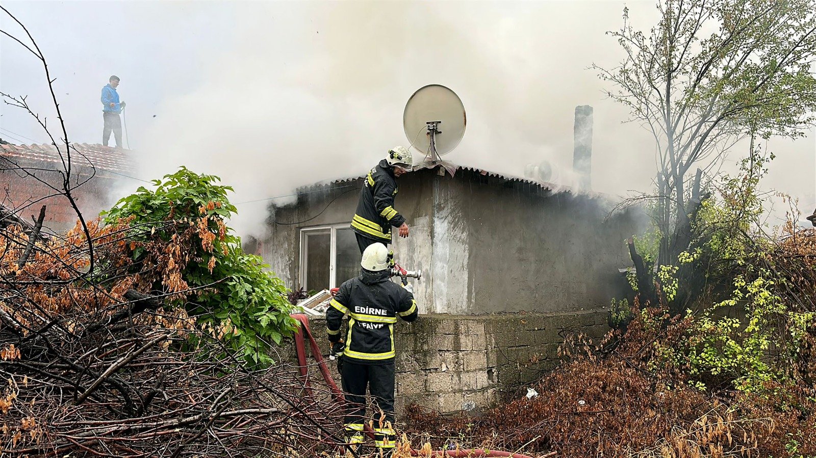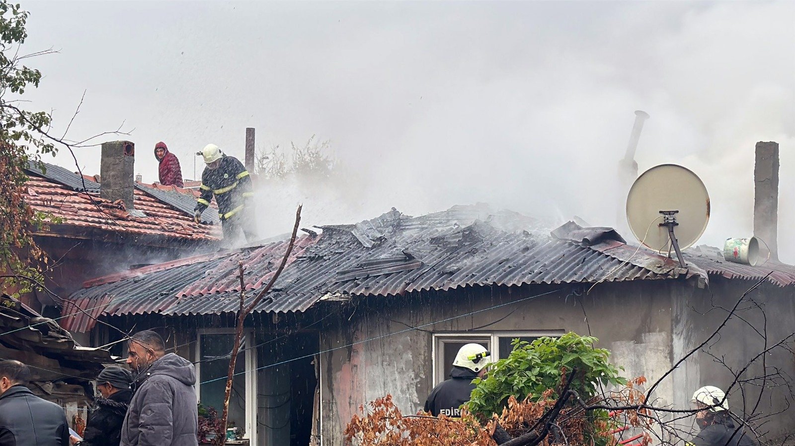 Edirne’de tek katlı müstakil ev, sobadan çıkan yangında kullanılamaz hale geldi.