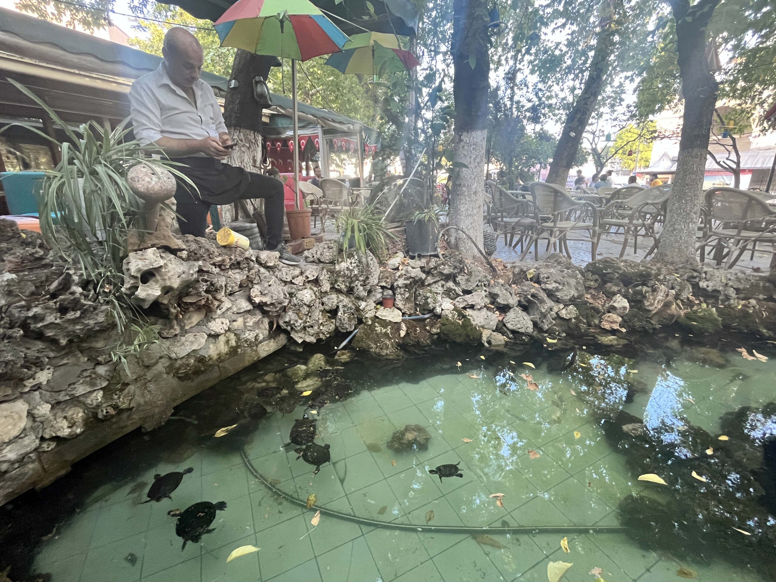 Kamil Tunca, 1995 yılından bu yana kafeterya işlettiğini belirterek, kaplumbağalara ise 15 yıldan beri baktığını söyledi. Tunca, “Burada kaplumbağalardan önce ördek bakıyorduk. Kafemizin adı ördekli parka çıkmıştı. Sonra kuş gribi hastalığı nedeniyle biraz sıkıntı yaşadık. Bizim ördeklerimizde hastalık yoktu ama çocuklar tedirgin oldu. Genelde çocuklarla aileler geldiği için kaplumbağaya döndük. Kaplumbağaları da şöyle beslemeye başladık. Kendimiz bir iki taneyle başladık. Sonra evde bakılan kaplumbağalar var, insanlar tatile falan giderken evlerinde bakamadıkları için bizim buraya bırakmaya başladılar. Zamanla çoğalmaya başladılar” dedi.