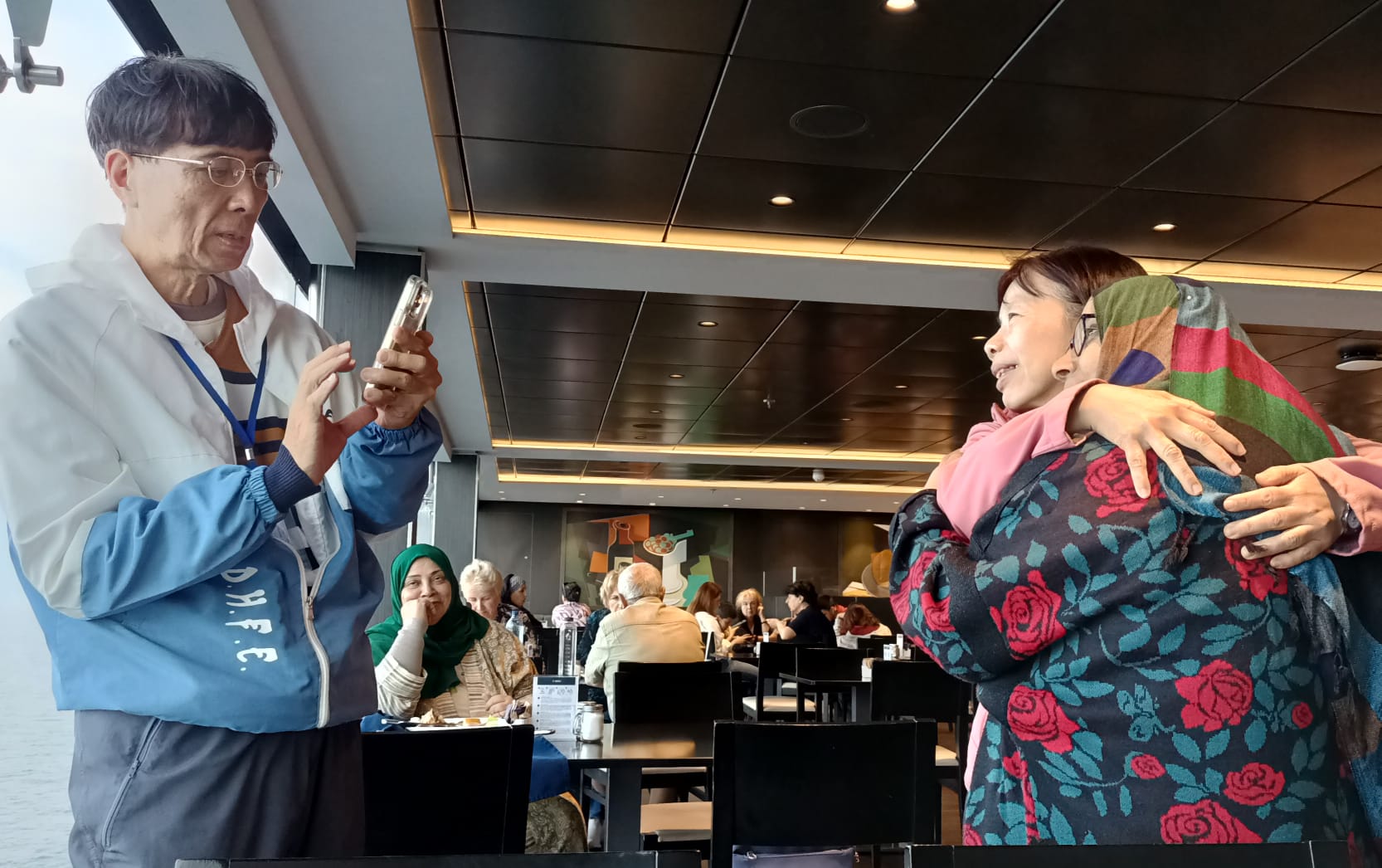 Hatta bu dediğim, bir sabah Avam’daki kahvaltım sırasında gözümün önünde yaşanıyor. Eşiyle oturan çekik gözlü bir hanım, karşı masaya gelen iki kadına İngilizce selam veriyor. Arada birbirlerine bir şeyler soruyorlar. Başları örtülü iki kadının Mısırlı olduklarını anlıyorum. İki kadın İngilizce koyu bir muhabbet eşliğinde kahvaltılarını ediyor. Kahvaltı bitiminde çekik gözlü hanım masasından kalkıp yan masadaki kadınla vedalaşıyor ve bir anda sarmaş dolaş oluyorlar. Seyrederken, gazeteci olduğumu ve bu anlamlı kareleri fotoğraflamam gerektiğini düşünüyorum. Aynı anda kadının eşi de kareye giriyor ve bu anları fotoğraflıyor. Bu gemiden aklımda kalacak, birbirlerinin hayatlarına dostlukla değen bu iki kadın oluyor.