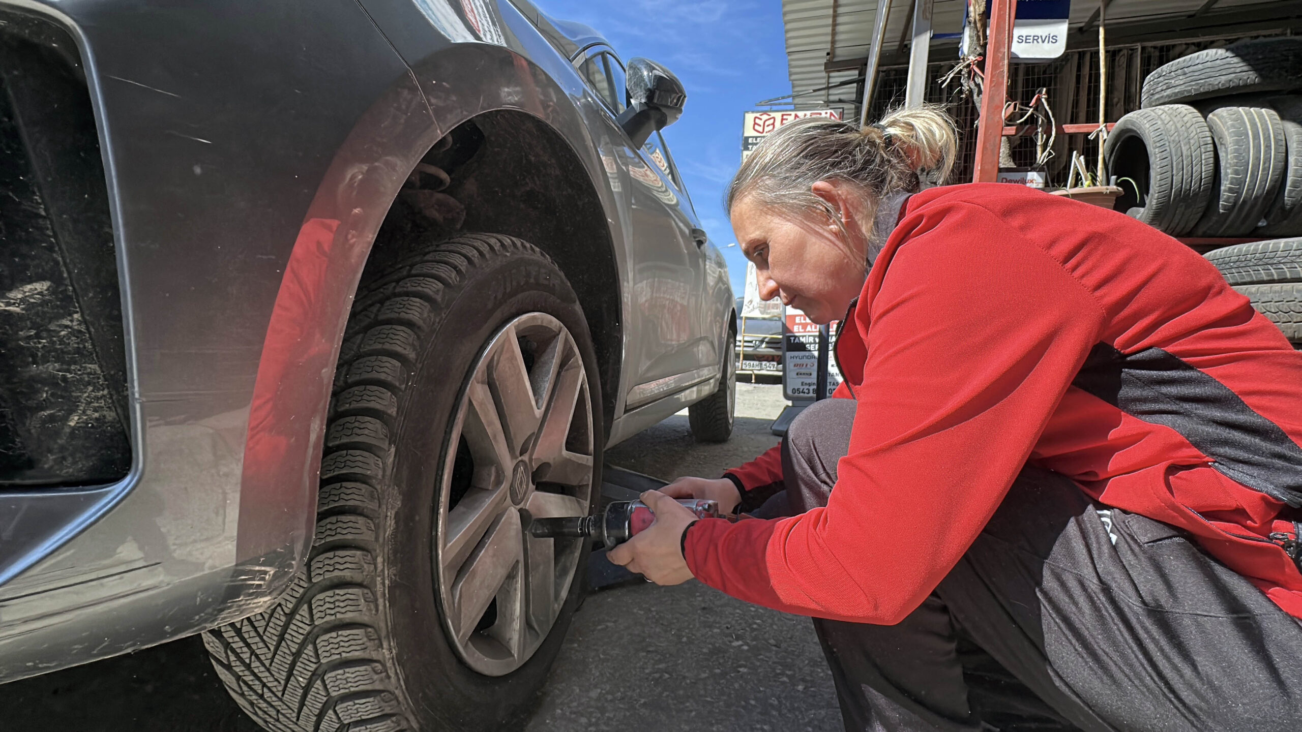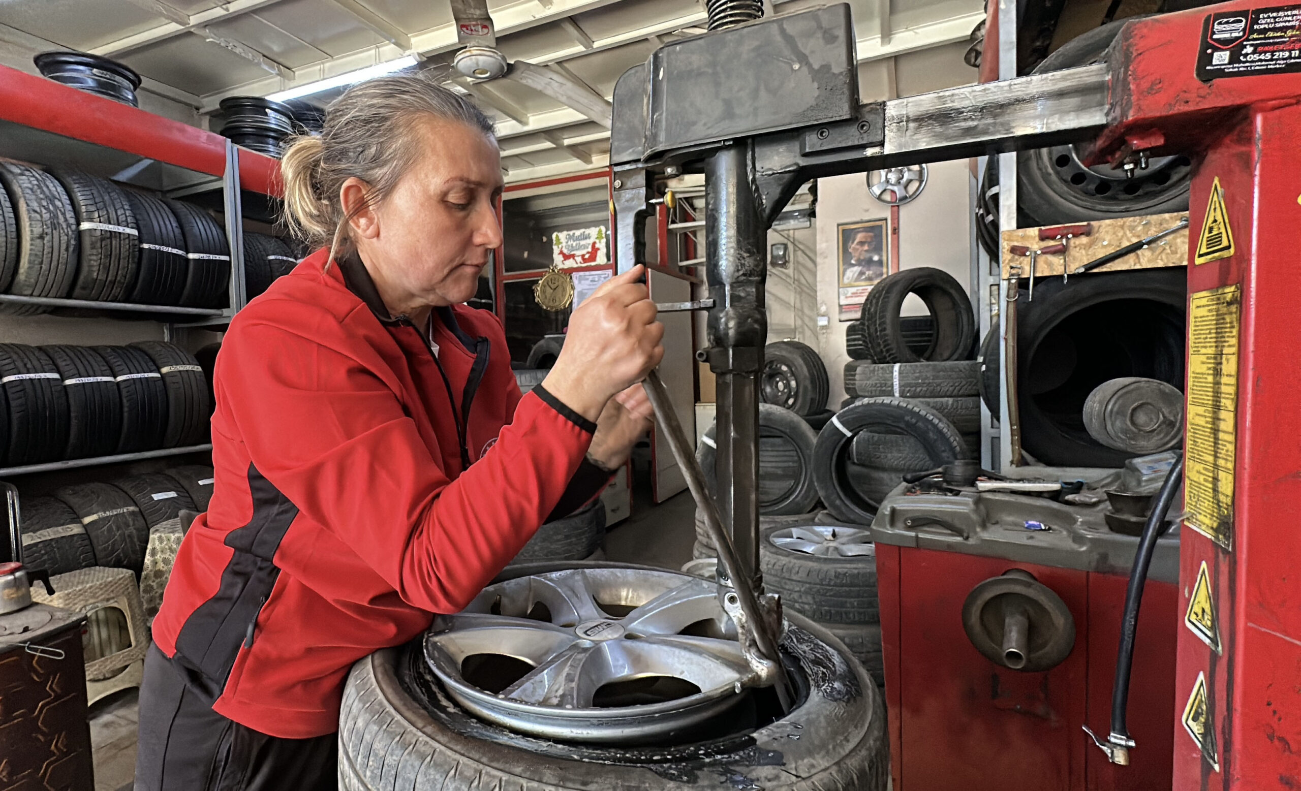 Edirne Sanayi Sitesi’nde 1992’de satış temsilcisi olarak başladığı lastik sektöründe, zamanla kendi işletmesini açan Remziye Cankıran (54), 2013 yılından bu yana lastik tamiri yapıyor.