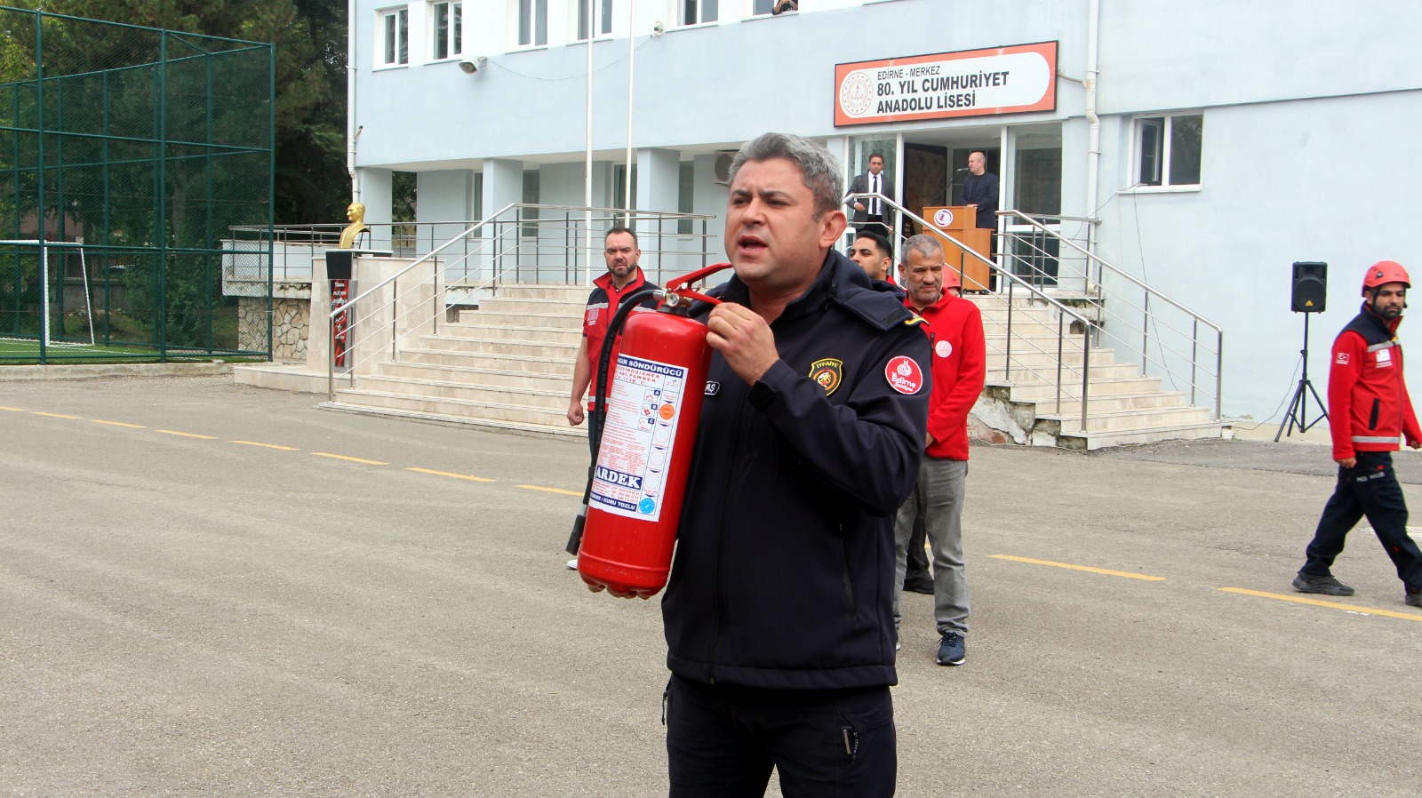 İl Millî Eğitim Müdürlüğü MEB-AKUB ve Edirne Belediyesi İtfaiye Müdürlüğü’nün katıldığı etkinlikte, olası deprem ve yangın senaryoları uygulandı.
