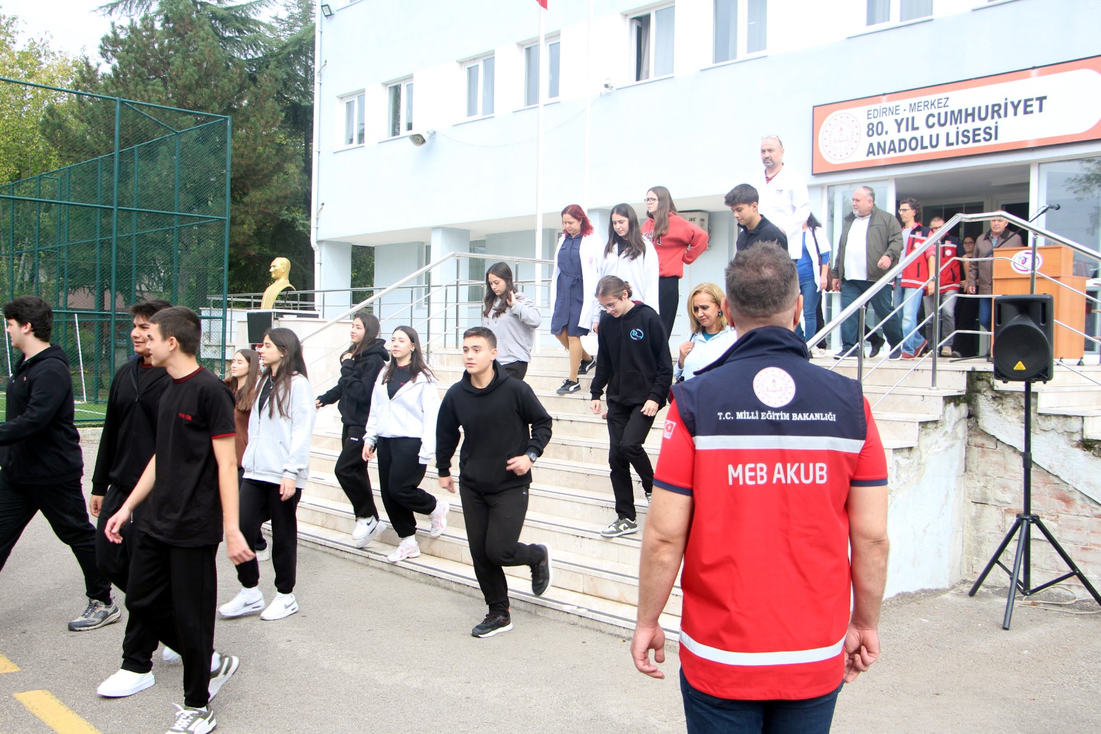 İl Milli Eğitim Müdürü Ferhat Yılmaz da, 80. Yıl Cumhuriyet Anadolu Lisesi’nde gerçekleştirilen tatbikata katıldı.