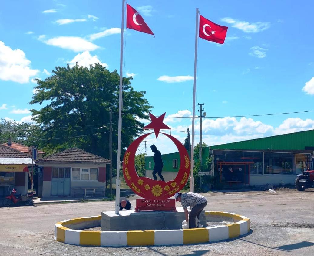 Yapımı tamamlanan döner kavşağın merkezine Atatürk silueti ile ay-yıldız motifinin yer aldığı bir figür yerleştirildi. Kavşağın iki yanında ise Türk bayrakları göndere çekildi.