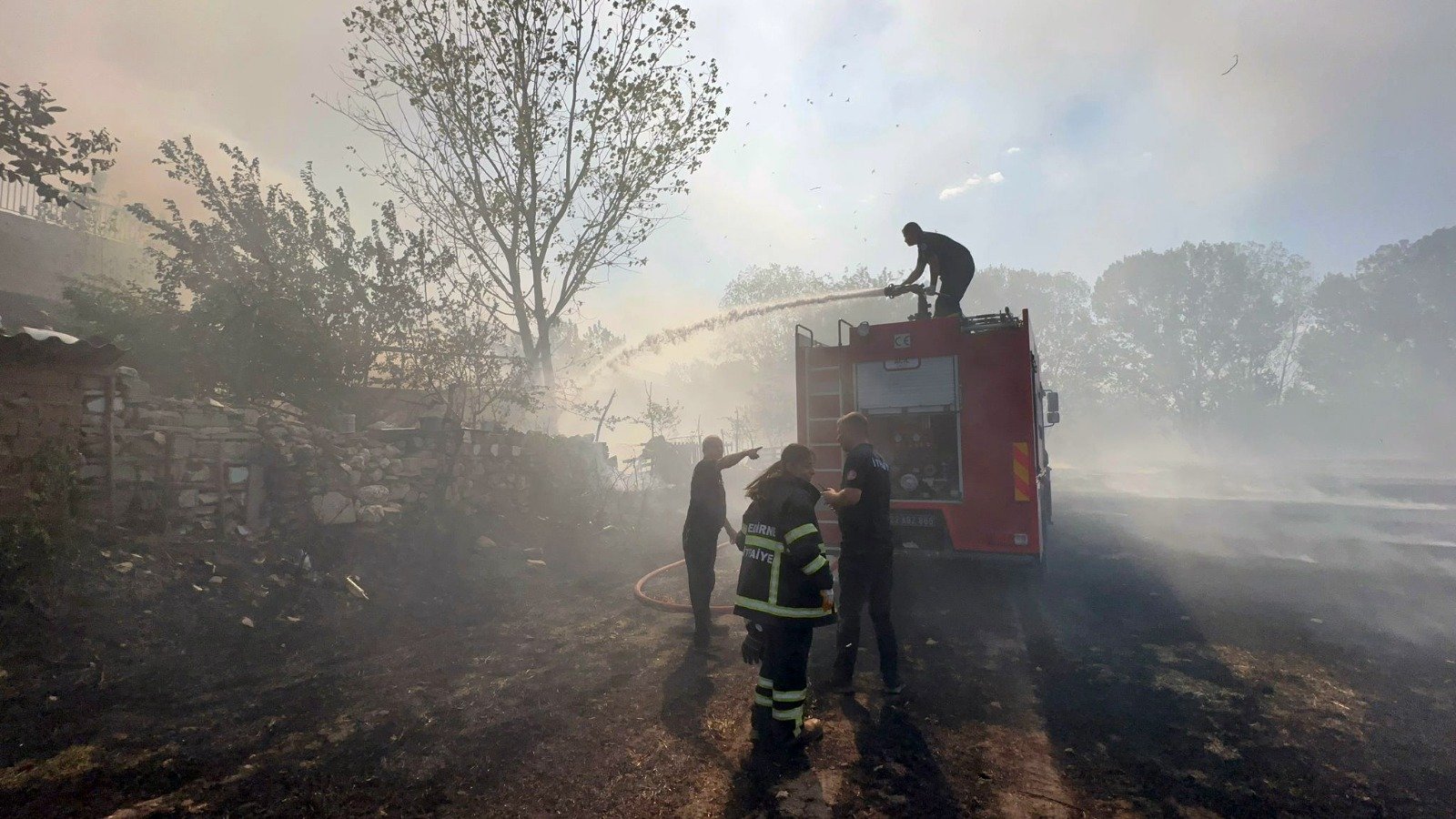 Yangın, yaklaşık 1 saatlik çalışmanın ardından, yerleşim yeri ve ağaçlık alana sıçramadan kontrol altına alındı.