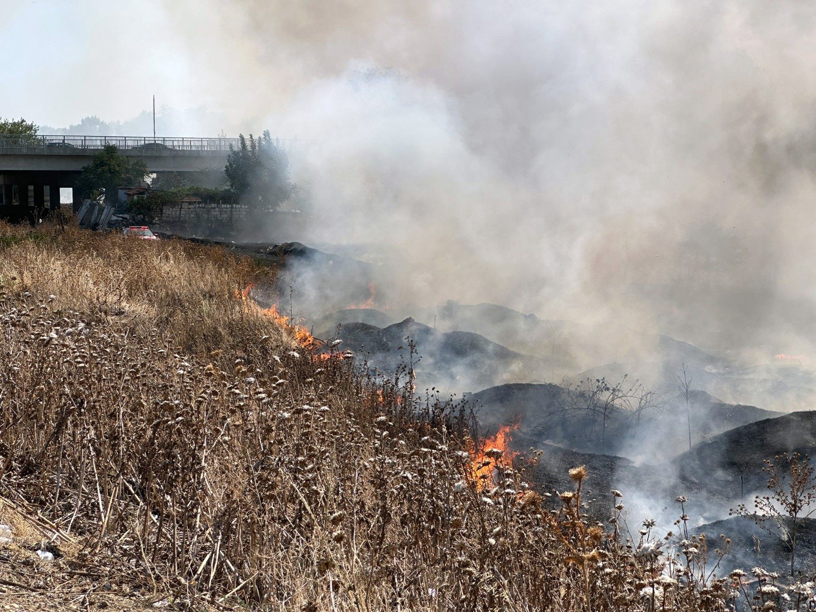 İhbarla bölgeye çok sayıda polis, itfaiye ve Orman İşletme Müdürlüğü’ne bağlı ekipler sevk edildi. Yangının sürdüğü dakikalarda polis, yoğun duman nedeniyle iki köprüyü geçici süreyle trafiğe kapattı.