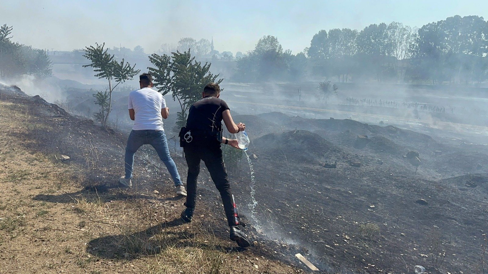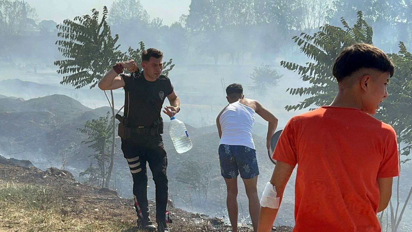 İtfaiye ve Orman İşletme Müdürlüğü ekiplerinin söndürme çalışmalarına, mahalleli de evlerinden taşıdıkları su dolu bidonlarla müdahale etti. Bölgede bulunan Edirne Emniyet Müdürlüğü’ne bağlı Yunus Timleri de bidonlarla su taşıyıp vatandaşlara yardımcı oldu.