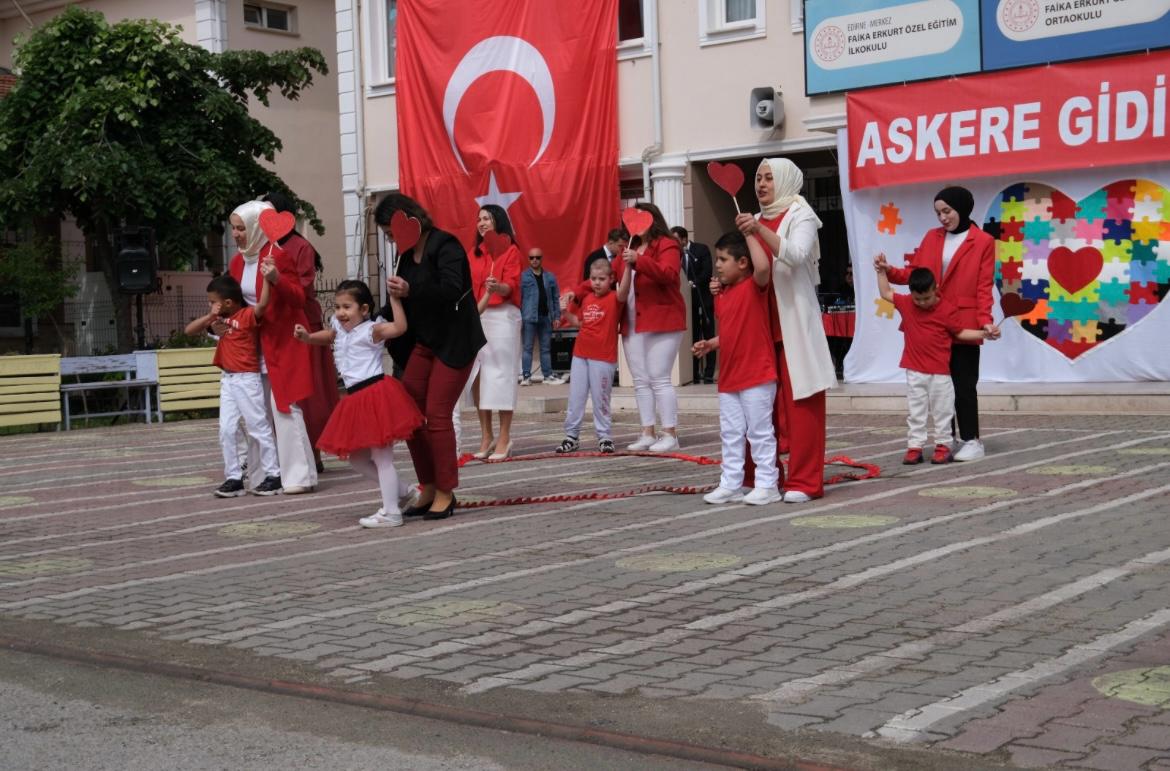 Edirne Faika Erkurt Özel Eğitim Okulu’nda 10-16 Mayıs Engelliler Haftası farkındalık etkinlikleri kapsamında temsili askerlik görevini yerine getirecek özel öğrenciler için “Asker Kınası” programı düzenlendi.