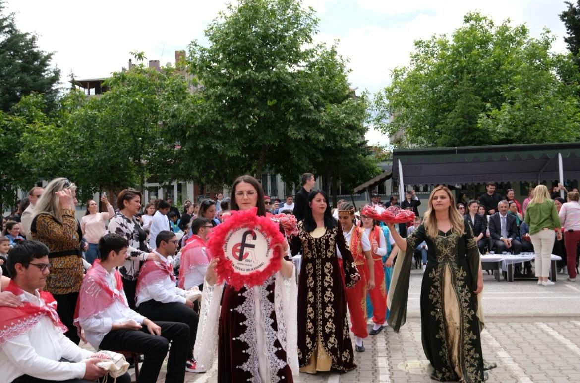 Faika Erkurt Özel Eğitim Okulu’nda gerçekleştirilen etkinlikte, temsili askerlik görevini yerine getirecek özel öğrenciler için geleneksel asker kınası programı düzenlendi.