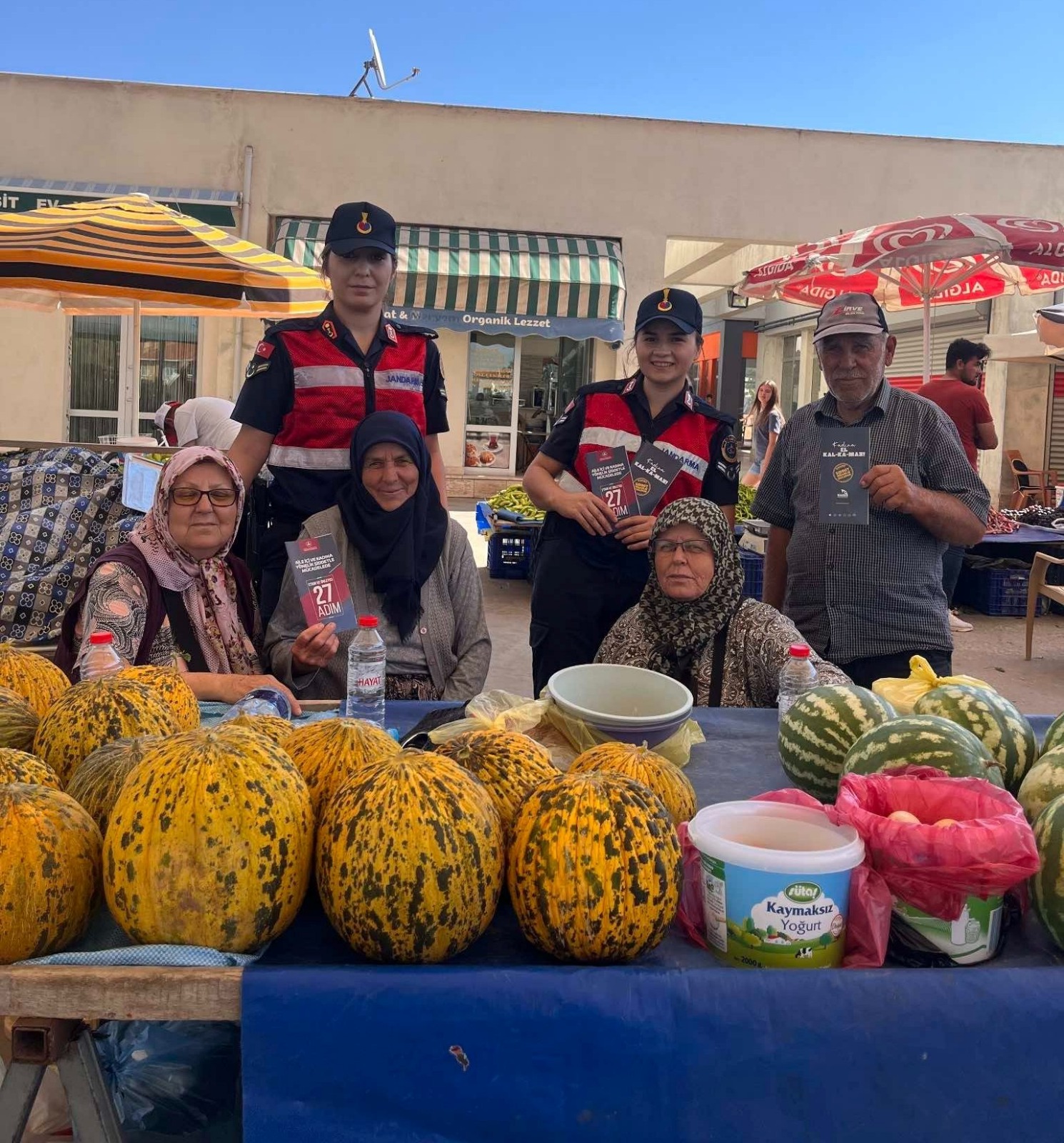 İpsala ilçesine bağlı Yenikarpuzlu beldesinde kurulan halk pazarında vatandaşlara jandarma ekiplerince Ailenin Korunması ve Kadına Karşı Şiddetin Önlenmesi amacıyla KADES Uygulamasına ilişkin bilgilendirmede bulunuldu.