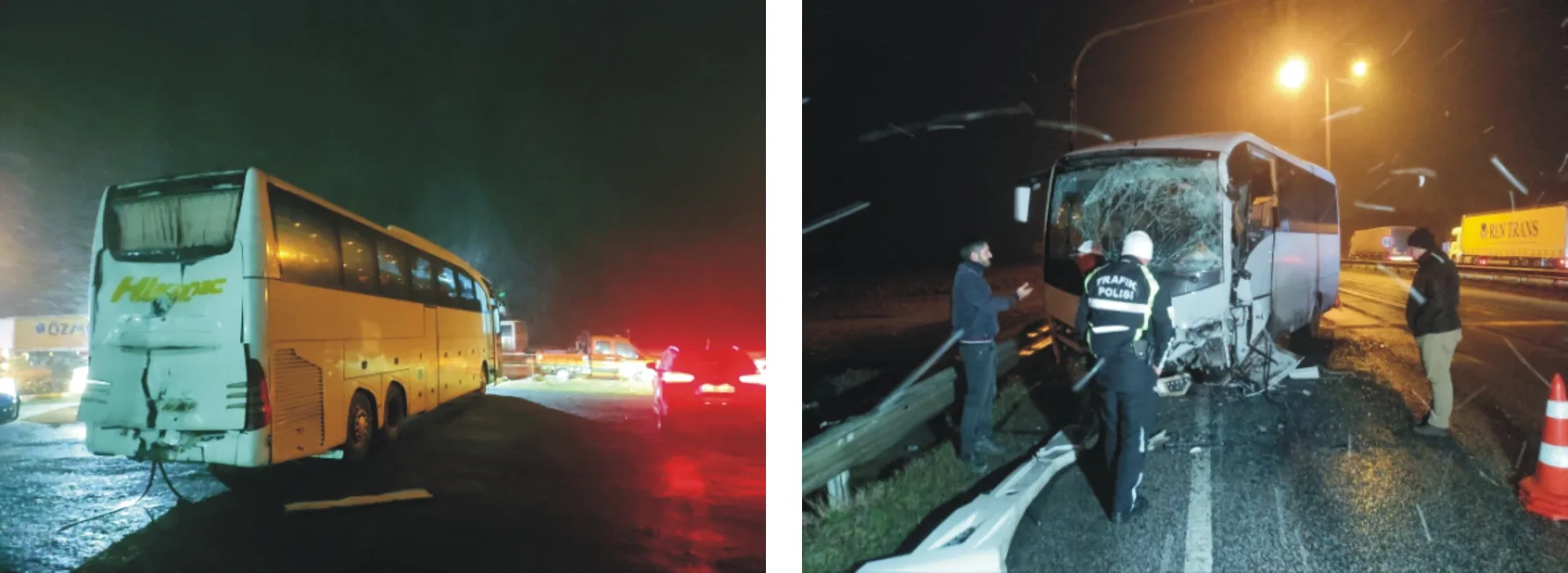 Kaza, saat 20.00 sıralarında Edirne- Kapıkule karayolunun 6’ncı kilometresinde meydana geldi. Kapıkule Sınır Kapısı’nda görevli polis memurlarını taşıyan 22 DH 245 plakalı servis midibüsü, yol üzerinde dönüş yapan, turistlerin bulnduğu Sıddık B. yönetimindeki 34 GPC 799 plakalı otobüse arkadan çarptı.