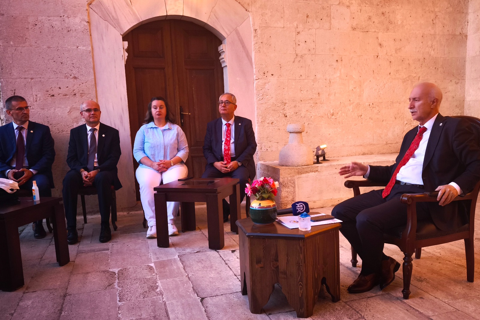 Rektör Prof. Dr. Hatipler, Edirne’nin en önemli tarihi ve kültürel değerlerinden olan Sultan II. Bayezid Külliyesi Sağlık Müzesi’nde, şehrimizdeki gazetecilere yönelik bir “Basın Sohbet Toplantısı” düzenledi. Sağlık Müzesi’nin yaz mevsimi boyunca haftanın üç günü geceleri de ziyaretçilere açılacak olması ve müzede yapılmakta olan iyileştirmelerin yanı sıra üniversitenin geneli ile ilgili konularda çeşitli bilgiler veren Prof. Dr. Mustafa Hatipler, basın mensuplarının merak ettikleri soruları da cevapladı.