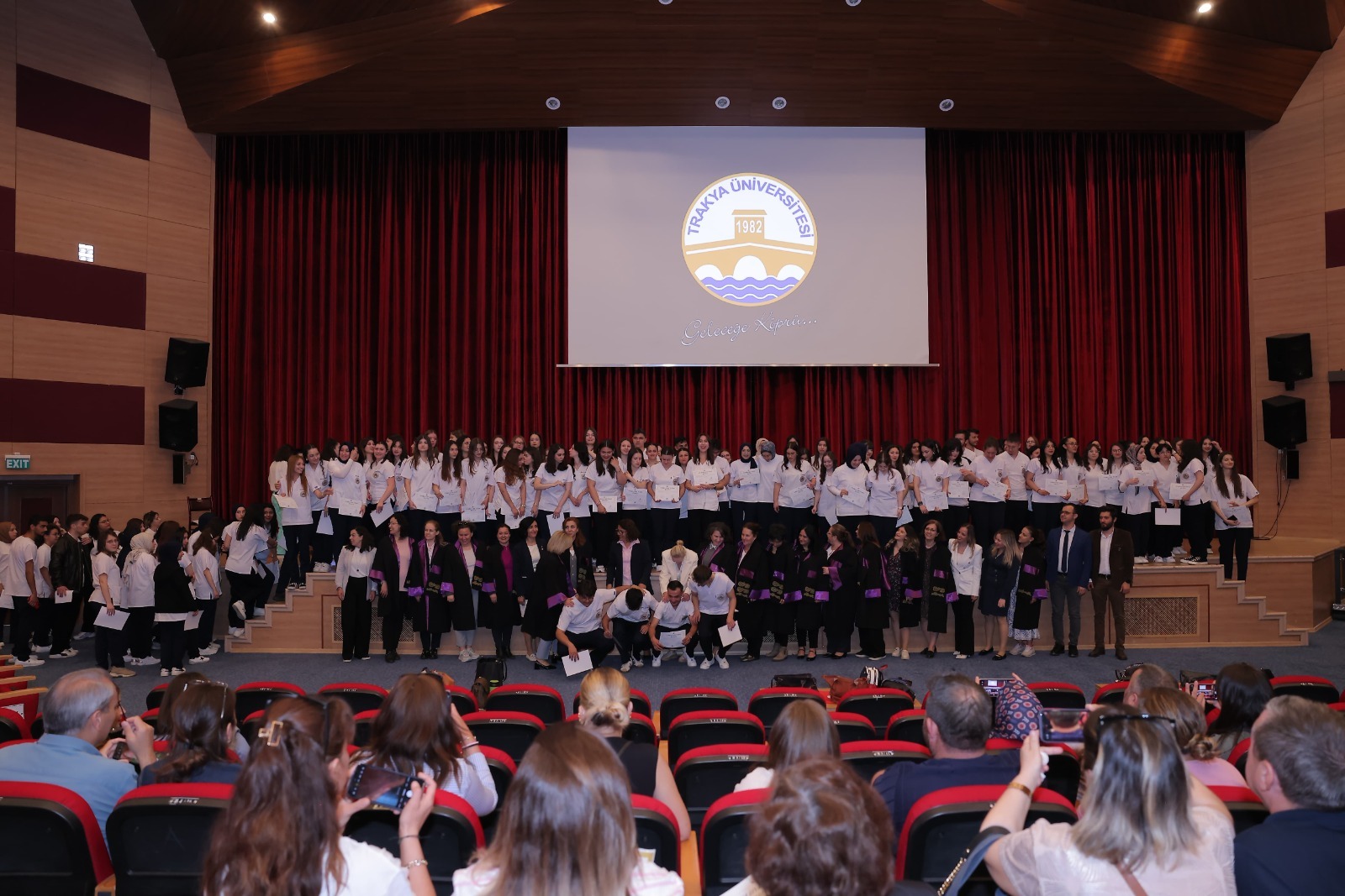 Trakya Üniversitesi Sağlık Bilimleri Fakültesi Hemşirelik Bölümü Başkanlığı ve Sağlık Araştırma ve Uygulama Merkezi Hemşirelik Hizmetleri Müdürlüğü tarafından Hemşirelik Haftası kapsamında düzenlenen Forma Giyme Töreni, Balkan Kongre Merkezi’nde gerçekleştirildi. Törene, Sağlık Bilimleri Fakültesi Dekanı Prof. Dr. Özgül Erol, Hemşirelik Bölümü Başkanı Prof. Dr. Hatice Kahyaoğlu Süt, akademisyenler, öğrenciler ve aileleri katıldı.