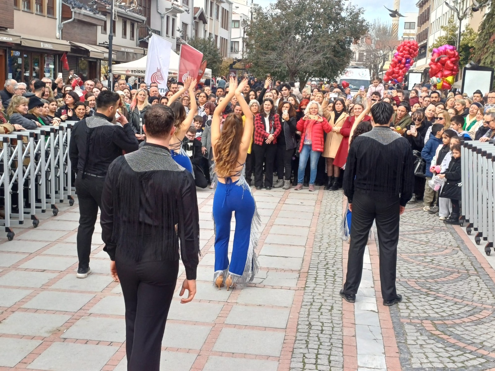 Edirne Belediyesi, 14 Şubat Sevgililer Günü dolayısıyla Saraçlar Caddesi’nde etkinlik gerçekleştirdi. Geleneksel hale gelen 14 Şubat etkinliğinde caddede çeşitli etkinlik alanları oluşturulurken, kurulan sahnede de konser ve dans gösterileri sergilendi. Programda  ‘Sevgiye Bir Kare, Edirne’ye Bir Hatıra’ konseptiyle fotoğraf çekimi yapılan çiftlerin mutlu anları LED ekrana yansıtıldı.