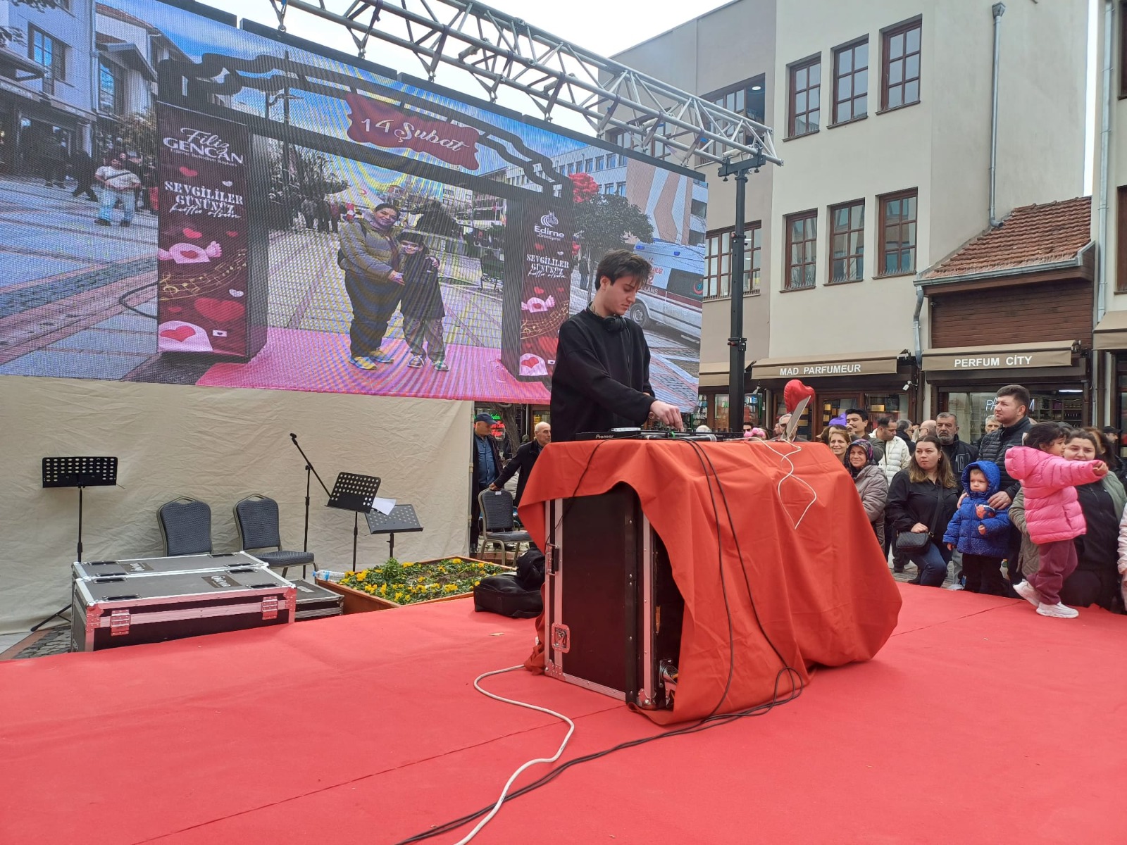 Edirne’de Sevgililer Günü’nde, 7’den 70’e çiftlerin buluşma adresi, Edirne Belediyesi’nin düzenlediği organizasyonla, Saraçlar Caddesi oldu.