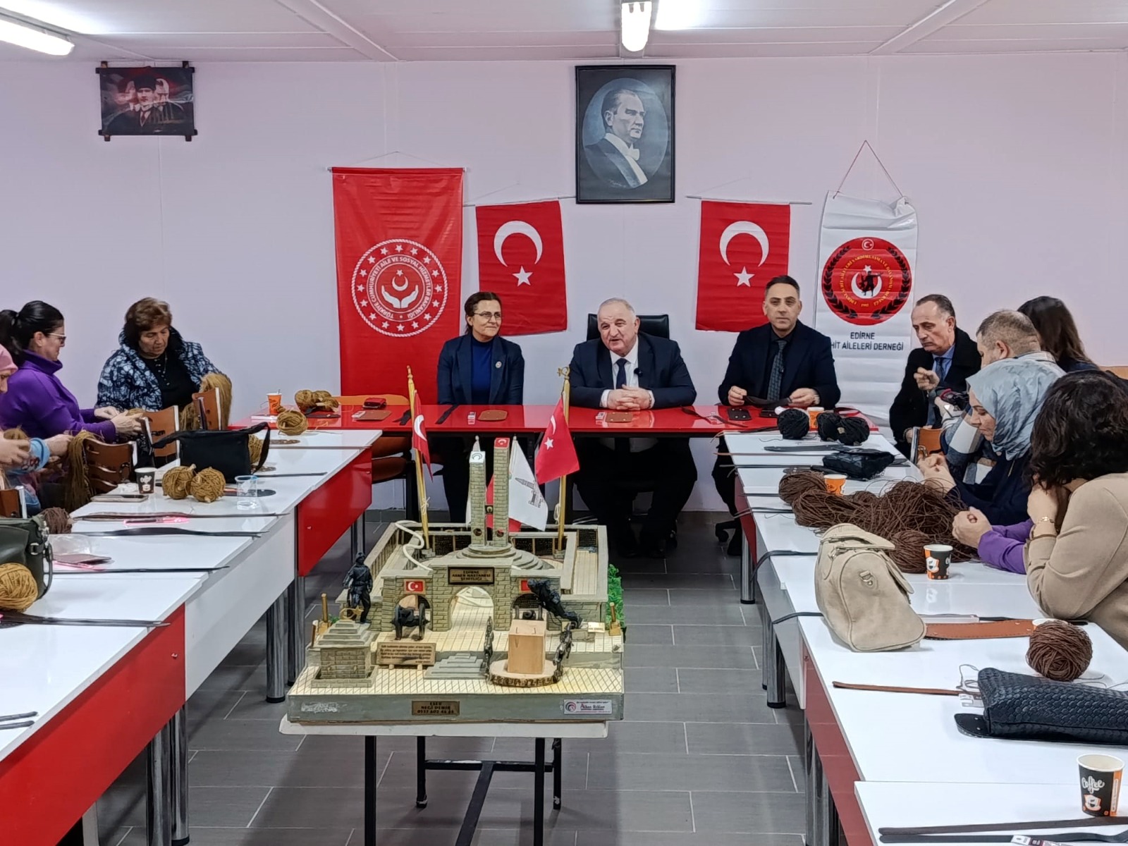 Edirne Aile ve Sosyal Hizmetler İl Müdürlüğü tarafından, Edirne Şehit Aileleri Yardımlaşma ve Dayanışma Derneği iş birliğiyle, şehit yakınlarına yönelik kağıt ipten örgü çanta kursu açıldı. Derneğin çok amaçlı salonunda başlayan kursta şehit yakınları, Halk Eğitim Merkezi el sanatları öğretmeni Tuğba Ülkü eşliğinde, kağıt iplerden örgü çanta yapımını öğrenmeye başladı.