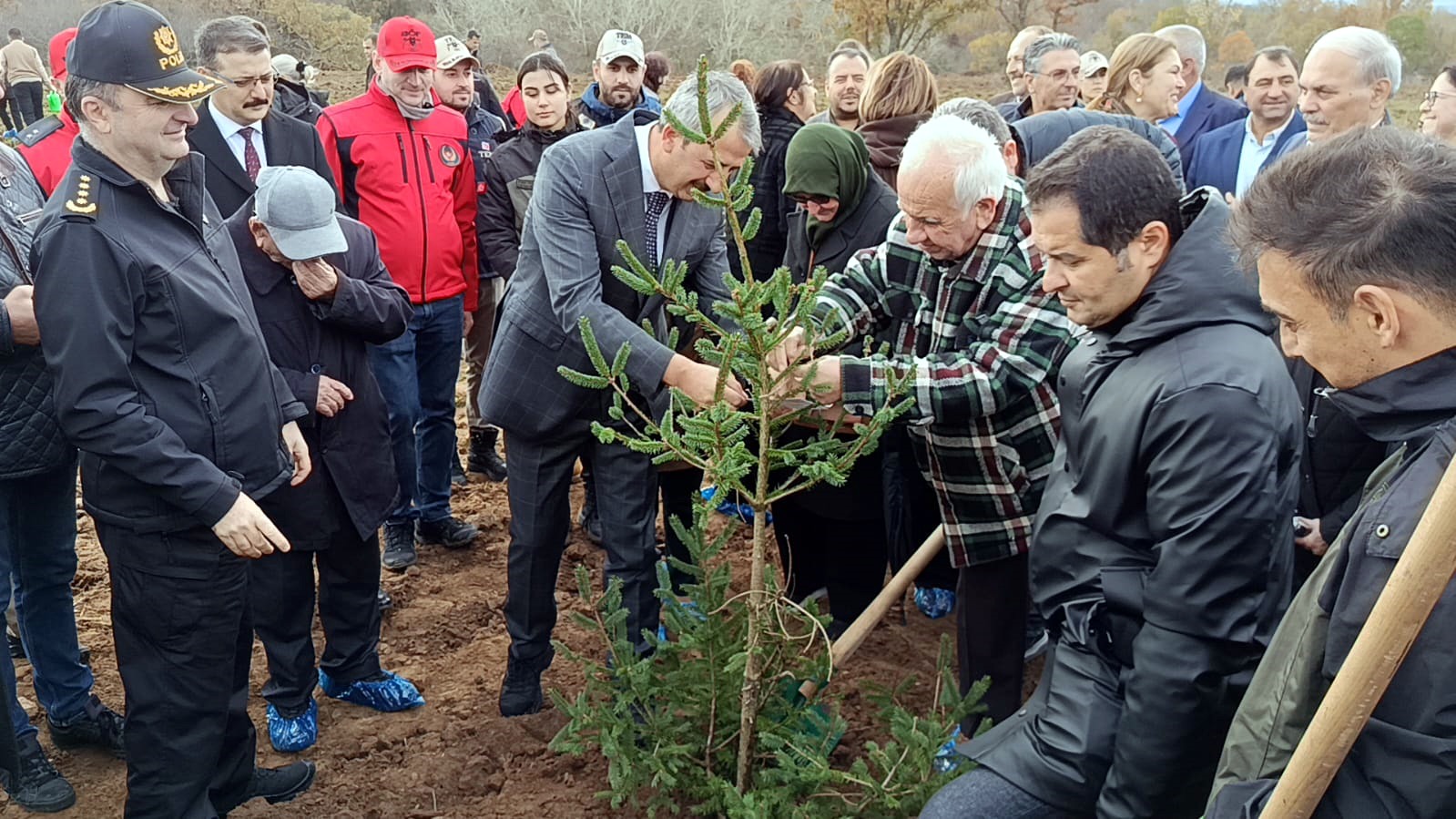 Konuşmaların ardından Vali Sezer ve törene katılanlar, fidanları dikti.