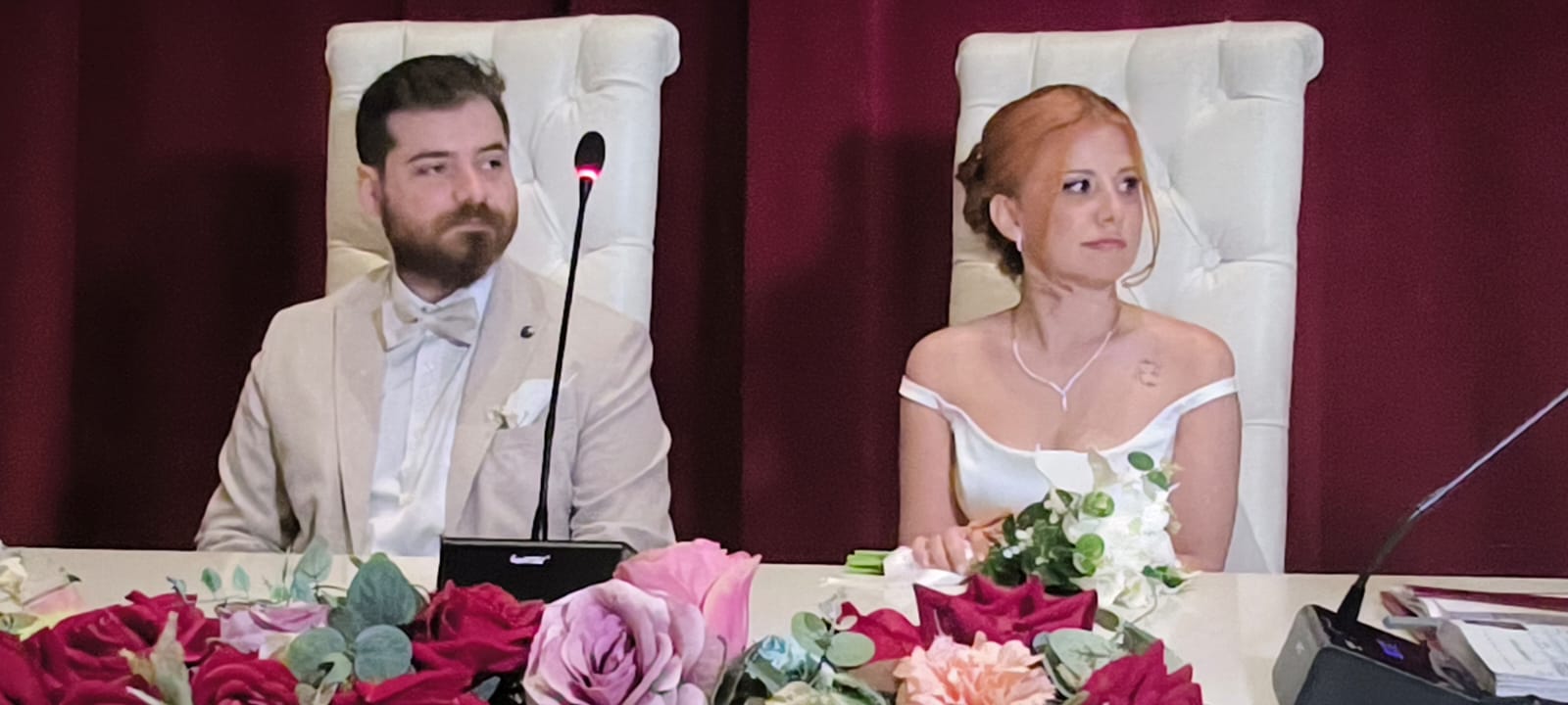Nikah töreninde ömür boyu birlikte yaşamaya ‘Evet’ diyen genç çift yakınları ve davetlilerin tebriklerini ve mutluluk dileklerini kabul etti.