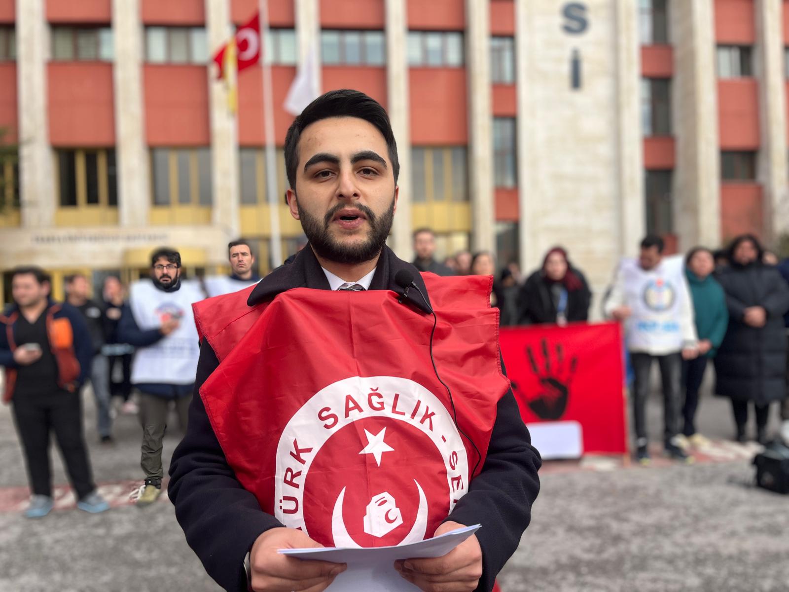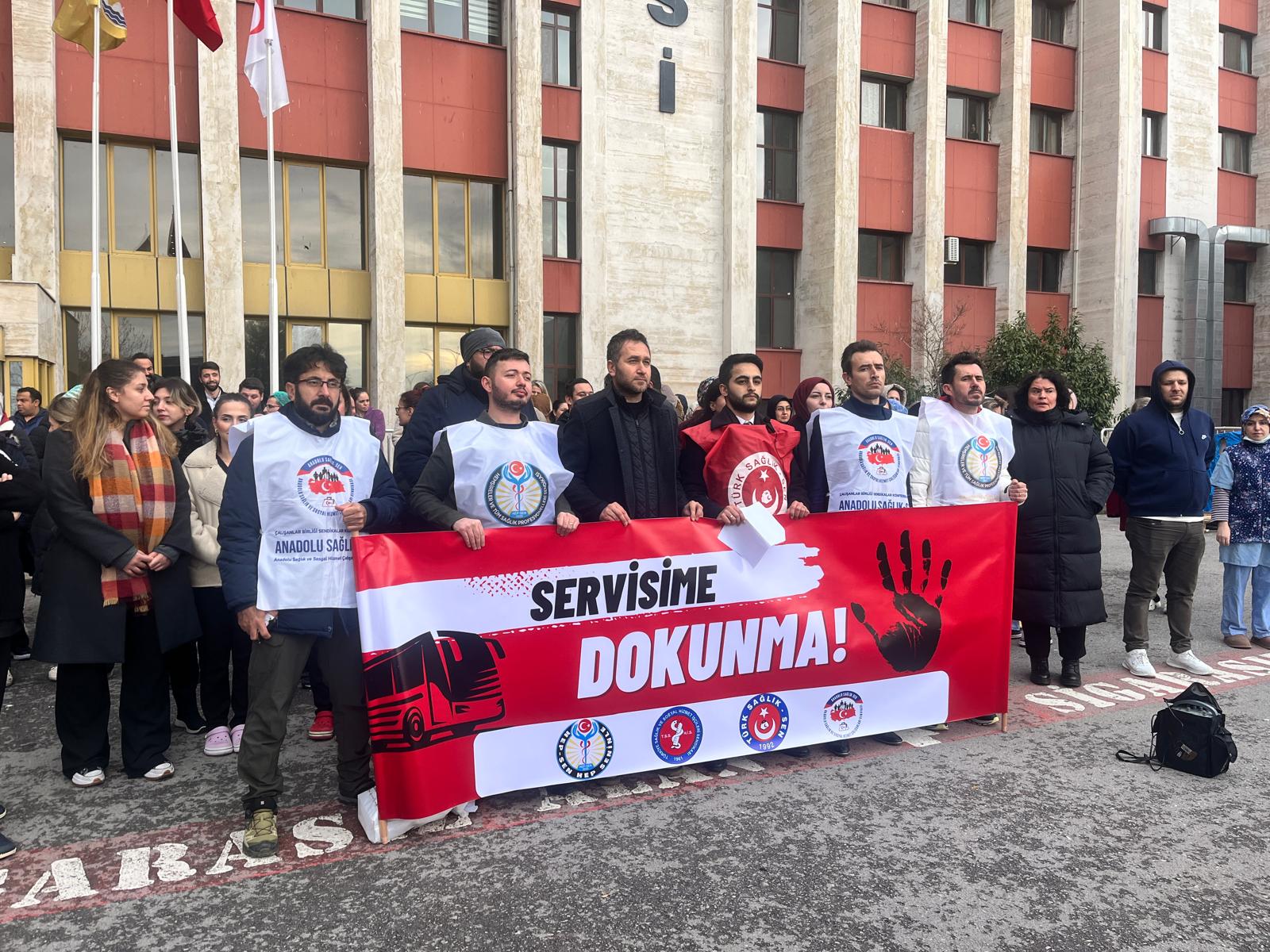 Türk-İş, Türk Sağlık Sen, Hep-Sen ve Anadolu Sağlık Sen üyeleri; Trakya Üniversitesi Rektörlüğünün, tasarruf tedbirleri kapsamında, 1 Ocak itibariyle personel servislerini kaldırmasını protesto etmek için bir araya geldi.