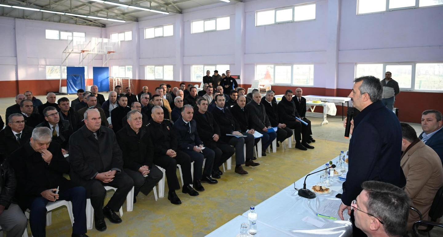 Vali Yunus Sezer, köylere yönelik yapılan altyapı-üst yapı çalışmaları, sıcak asfalt yol çalışmaları, tarımsal sulama ve diğer yatırımlar hakkında değerlendirme ve açıklamalarda bulunduğu buluşmada, muhtarların ve vatandaşlarımızın taleplerini dinledi.