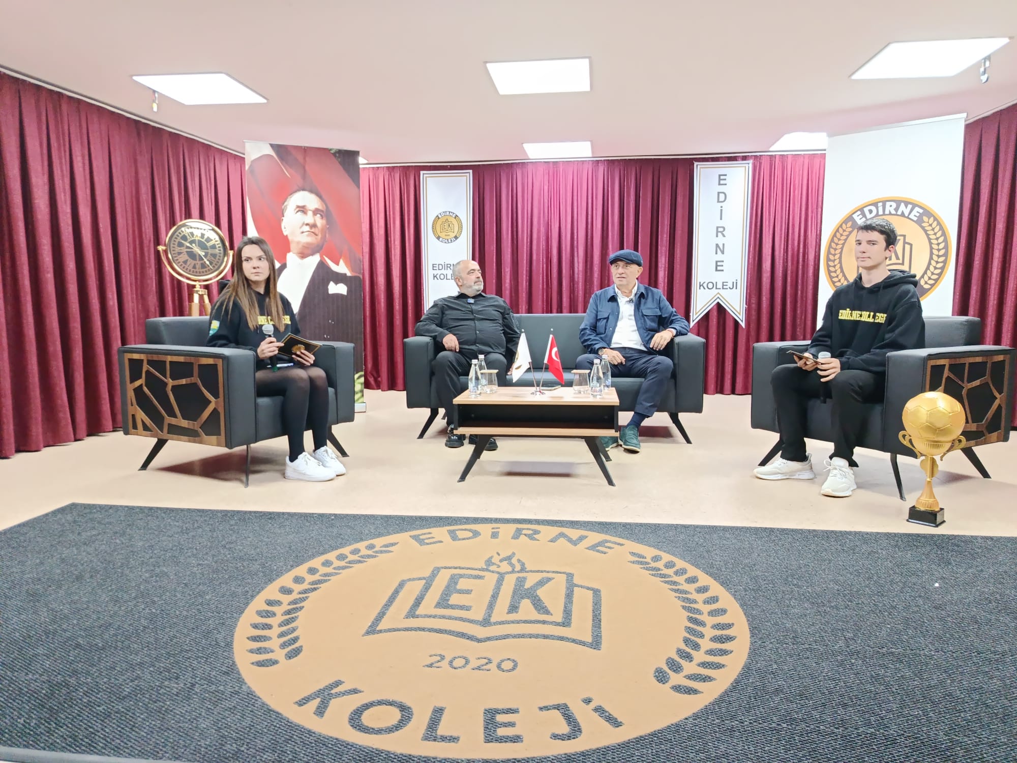 Televizyonun tanınan spor yorumcularından, eski futbolcu Sinan Engin, Edirne Koleji’nde düzenlenen etkinlikte öğrencilerle buluştu… Deneyimli isim Engin, öğrencilere spor yapmaları konusunda tavsiyede bulunarak, “Mutlaka spor yapın çocuklar, her gün spor yapın. Bunun yanında okulunuzu da ihmal etmeyin” dedi…