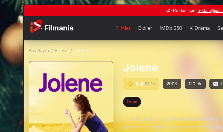 Özellikle bağımsız ve dram türünü seven izleyiciler için öne çıkan yapımlar arasında Jolene izle seçeneği dikkat çekiyor. Karakter odaklı anlatımı ve etkileyici hikâyesiyle öne çıkan film, hâlâ sinema tutkunlarının ilgisini çekmeye devam ediyor.
