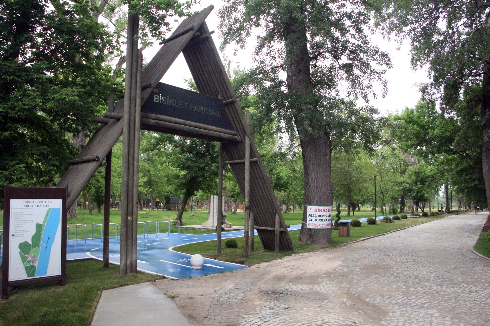 Sezer, alanın 4 bin metrekaresinde çocuk oyun alanları bulunduğunu kaydederek, “4 bin metrekare alanda çocuk oyun alanları düzenlendi. Yine etkinlik alanı dediğimiz çocuklarımıza, gençlerimize yönelik 4 bin metrekare alanda etkinlik alanları düzenlendi. Gerçekten de Meriç Nehri’nin hemen kıyısında ormanın içerisinde, vatandaşlarımızın özel hazırlanmış toprak ve zeminde yürüyebilecekleri yaklaşık 10 kilometrelik yürüyüş alanı düzenlendi. Burayı gezdiğiniz zaman da sincapları da göreceksiniz. Daha önce kullanıma açılmayan, kullanılmayan orman alanları da bu şekilde patika yol şeklinde, yürüyüş alanı olacak şekilde düzenlendi. Buradaki ağaçlar da yine rehabilite edildi. Kuruyan dalları kesildi. Yeni alanlar açıldı burada. Diğer bir konu bisiklet yolu, bisiklet yolumuz da 5 kilometre. Yine yürüyüş alanına eşlik edecek bisiklet yolumuz var. Bu da büyük bir kısmı Meriç Nehri’nin hemen kenarında, bir kısmı da ormanın içerisinde devam ediyor. Yine tamburlu granit yollar 1 kilometre kadar” şeklinde konuştu.