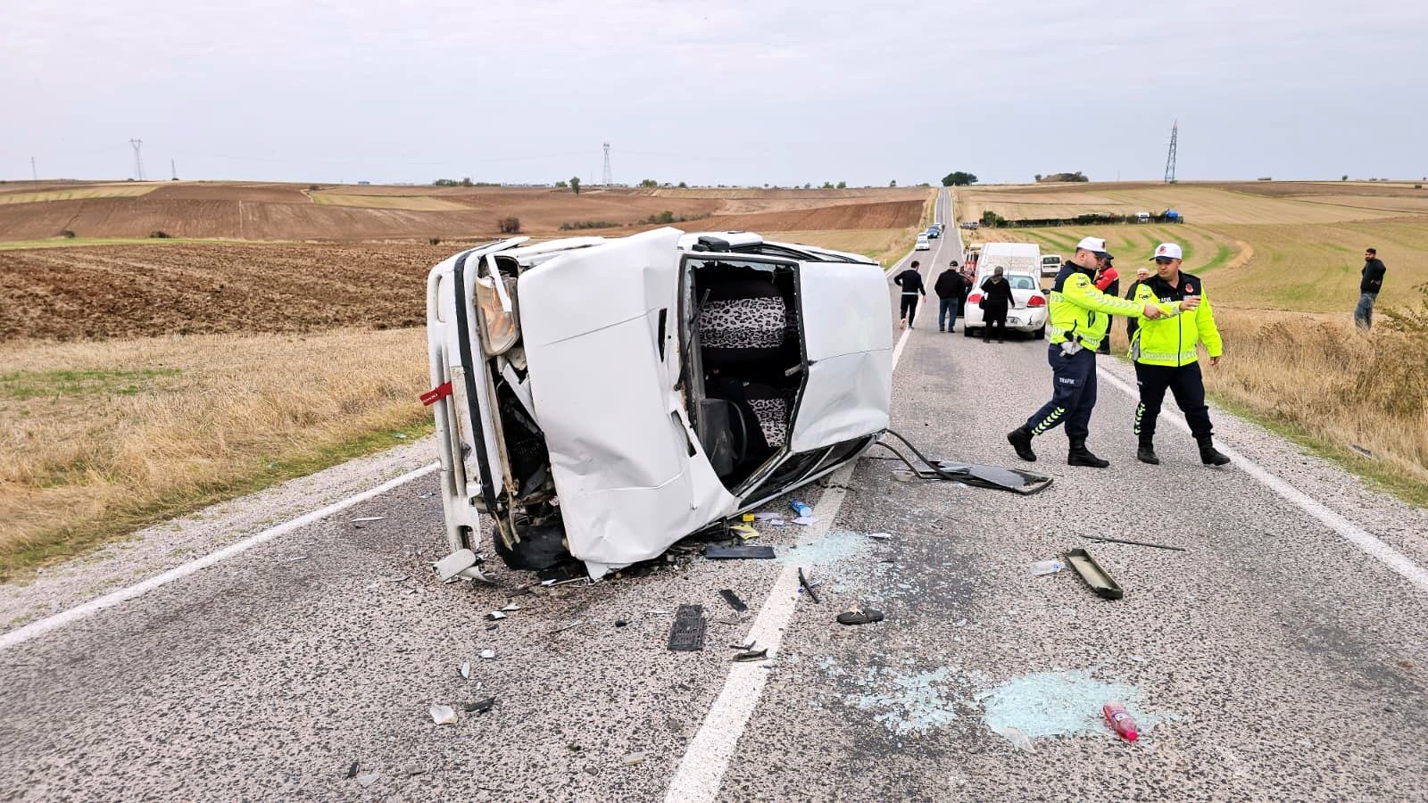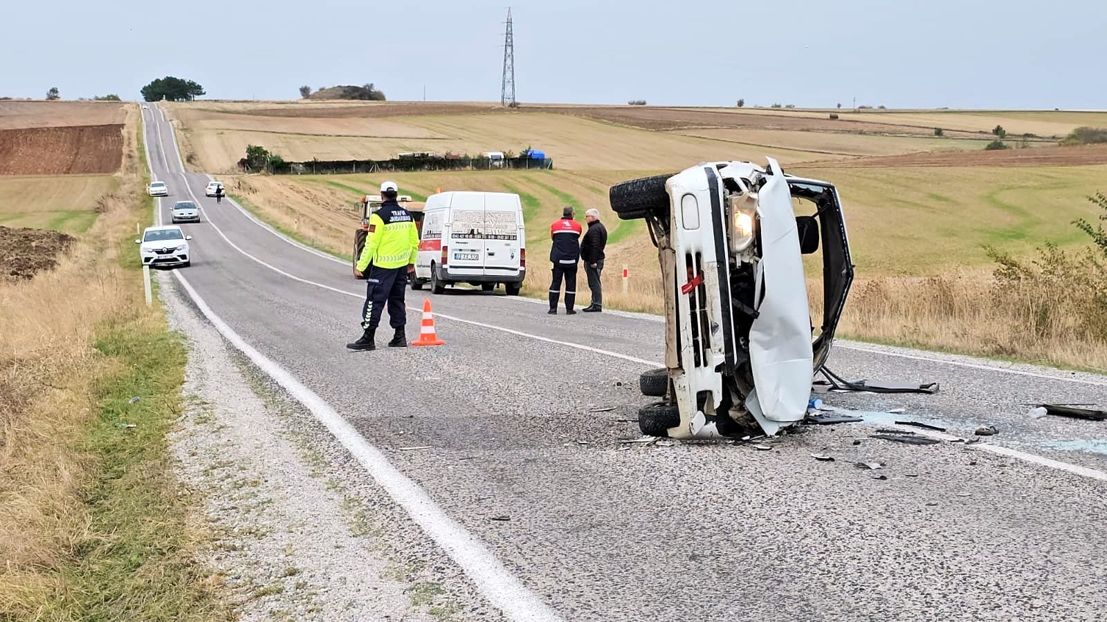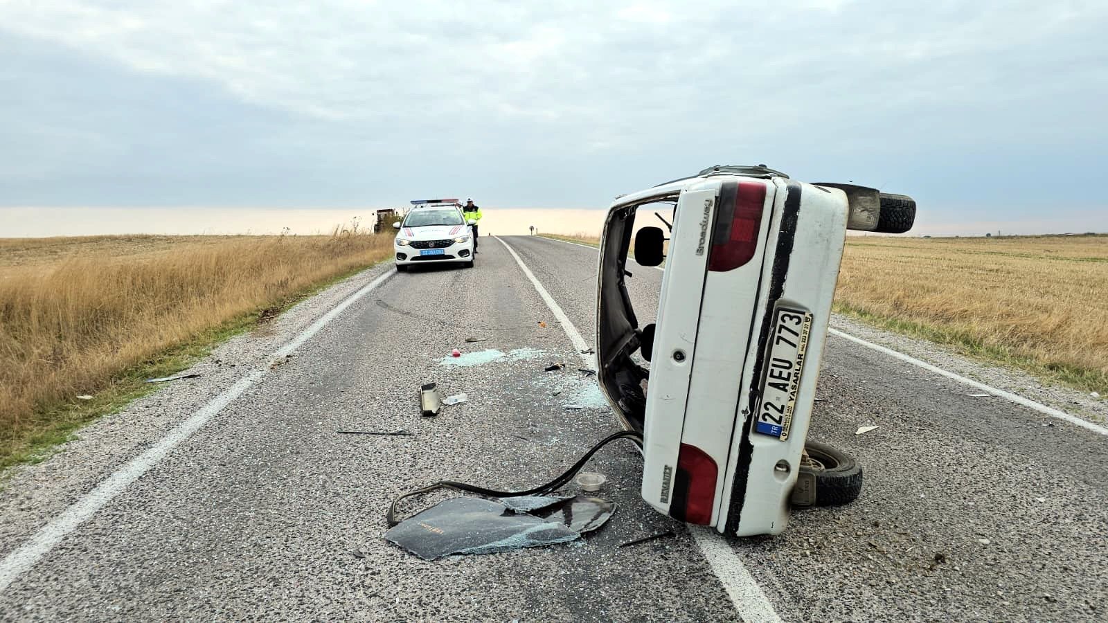 Edirne’de Süloğlu yolunda meydana gelen kazada, seyir halindeki iki otomobilin çarpışması sonucu biri takla atarken, 3 kişi yaralandı.
